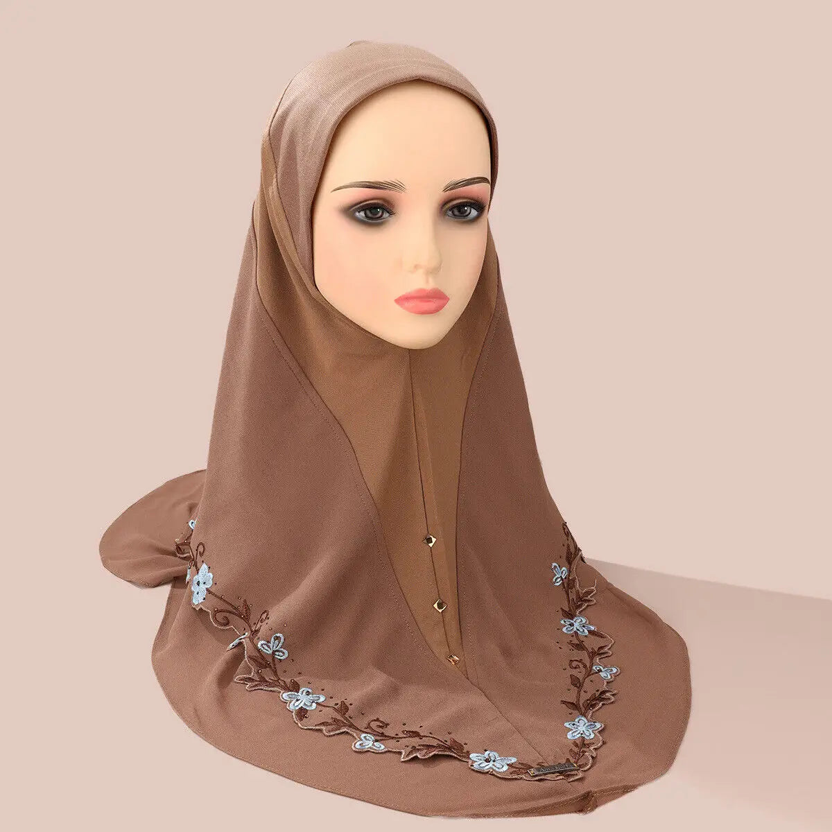Malaysia Embroidery Floral 2 Layer Hijab Instant Muslim Wear Direct Selendang Islamik Tudung Arab Turban