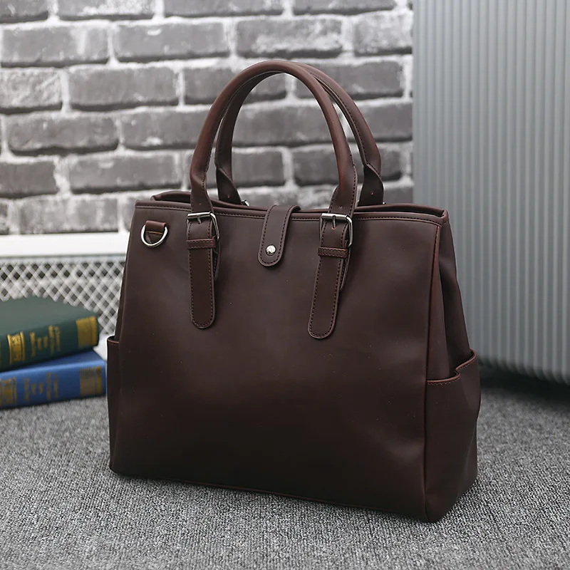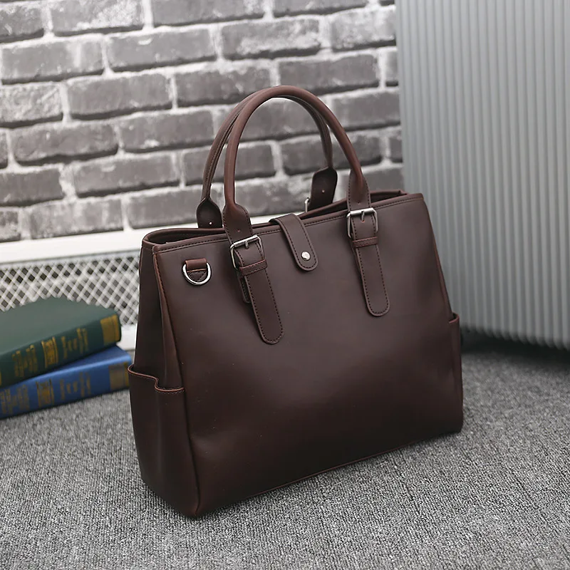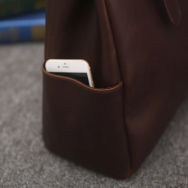 Beg Tangan Kulit Lelaki Beg Pengutus Komputer Riba 14 Inci untuk Pejabat Perniagaan Vintage Lelaki Komputer Beg Selempang Bahu Beg Tote