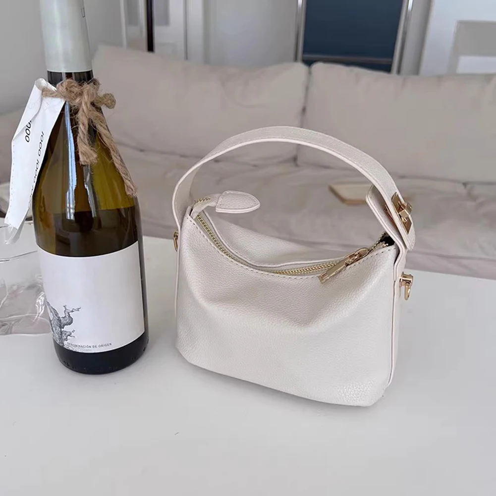 Beg Bahu Kecil Serbaguna Wanita Ringan PU Vegan Kulit Beg Selempang Warna Pejal Beg Tangan Tangan Atas Pemegang Zip Penutup Ketiak Beg Bahu Semua Padanan