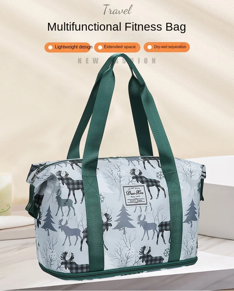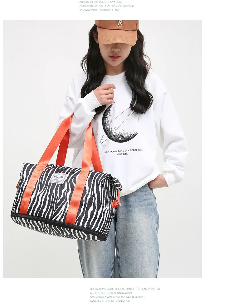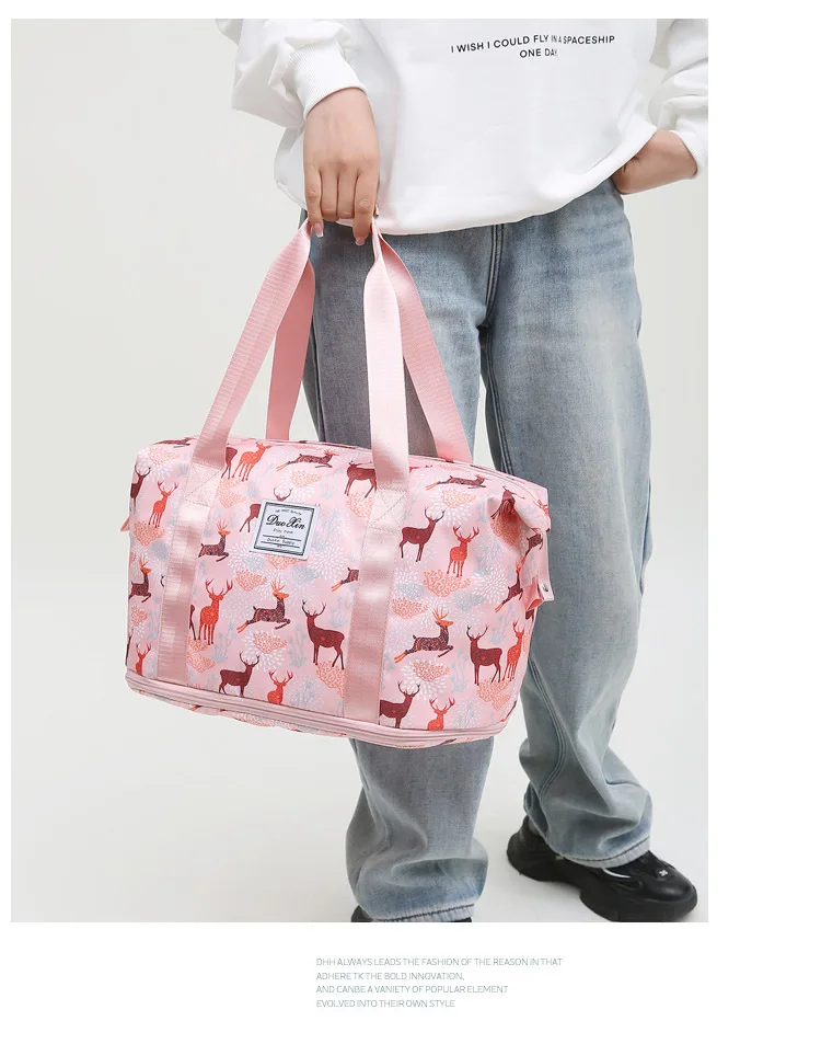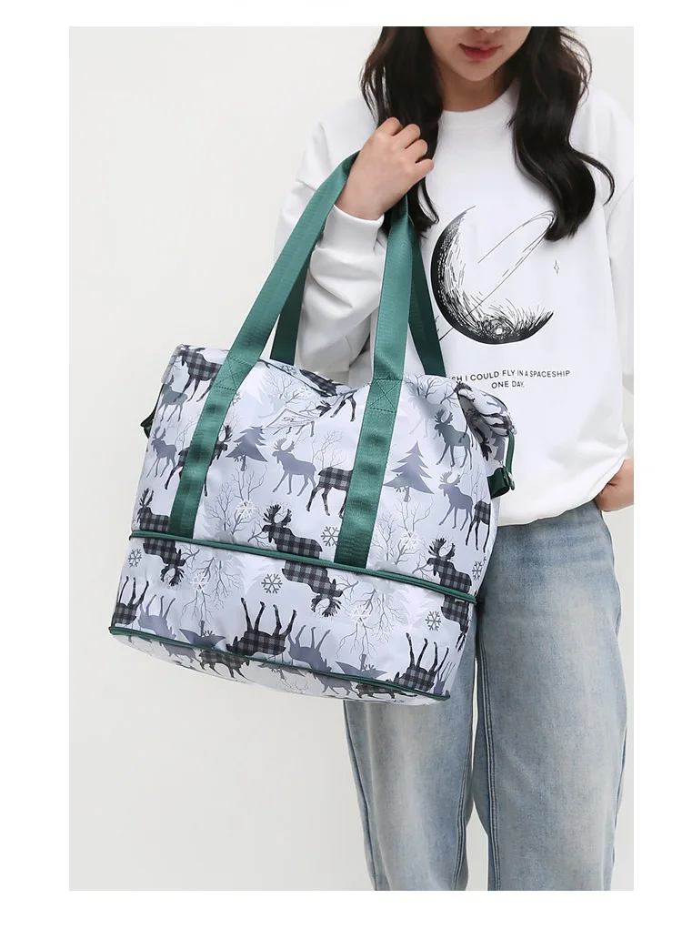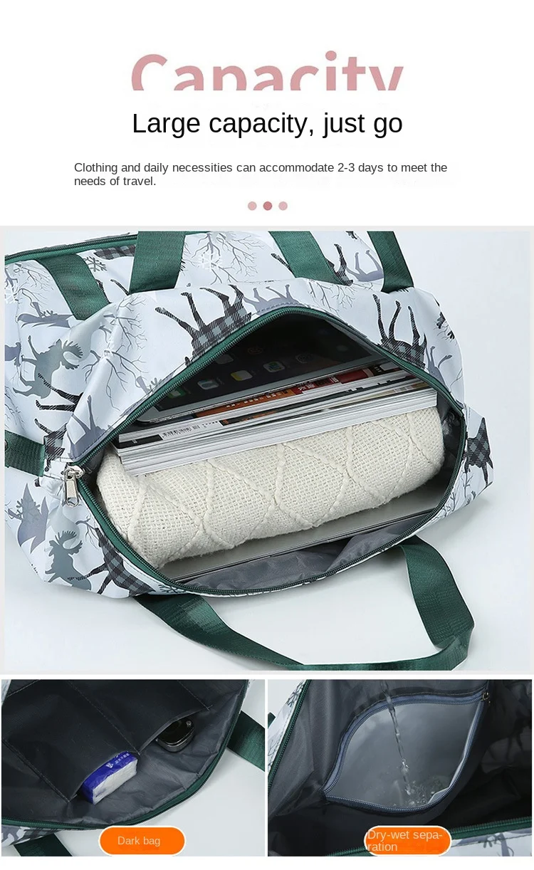 Beg Perjalanan Fesyen Baru untuk Wanita Berkapasiti Besar Bagasi Kalis Air Kering dan Basah Beg Tangan Perjalanan Hujung Minggu Penyimpanan Boleh Dilipat Oxford