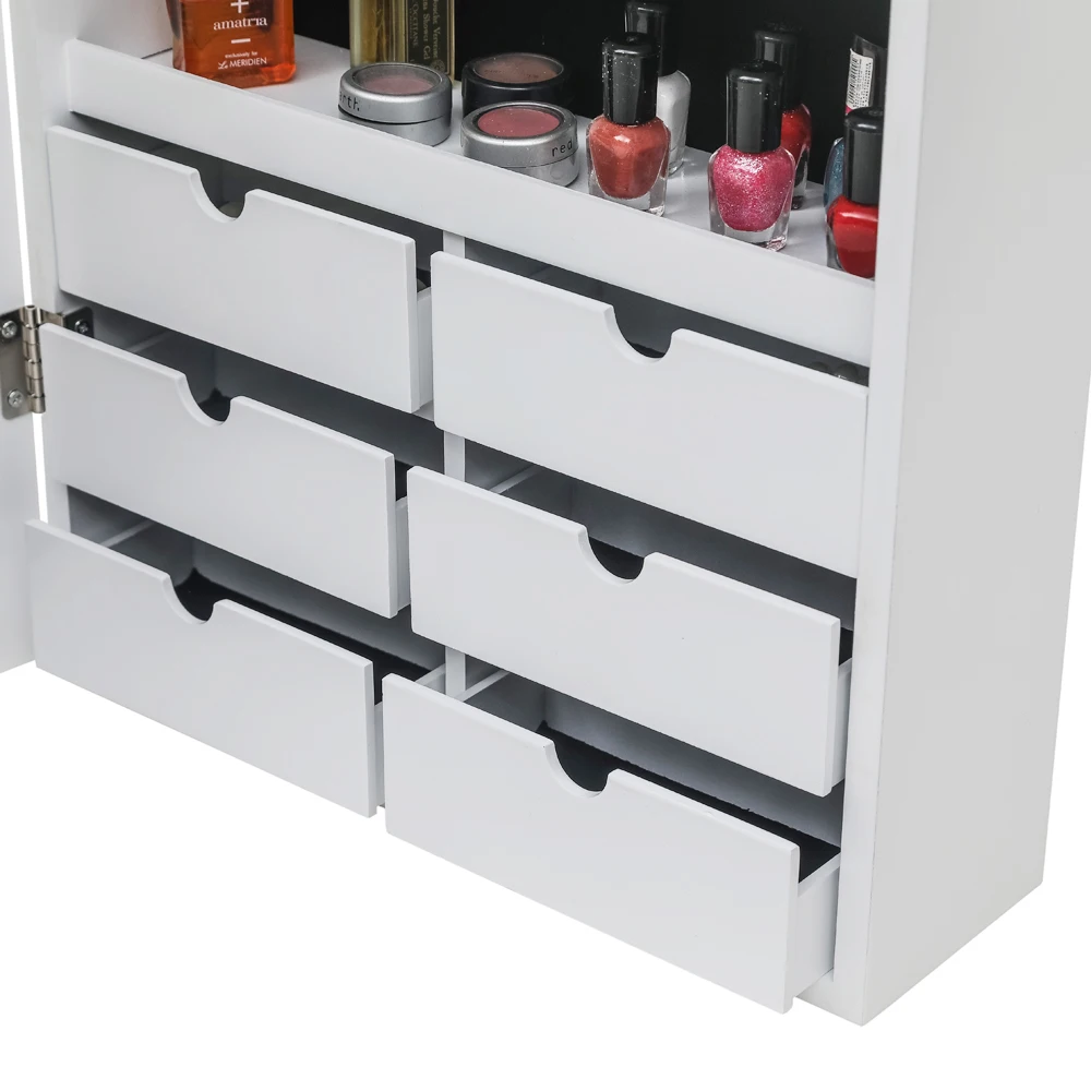 Bukan Cermin Penuh Kayu Dipasang di Dinding Rak 4 Lapisan 6 Laci 8 Lampu LED Biru Penyimpanan Barang Kemas Kabinet Cermin - Putih