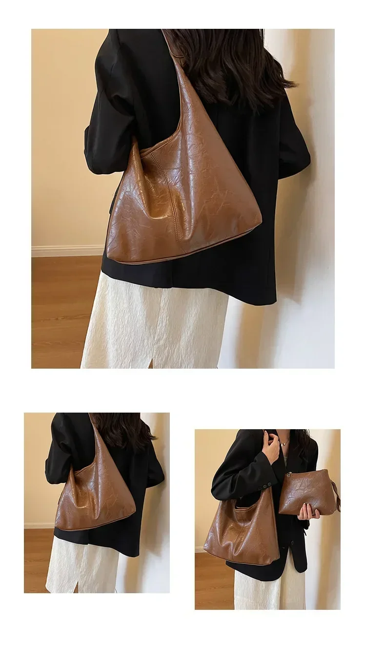 Beg Bahu Kulit PU Lembut untuk Wanita Tote Perkahwinan Semua Padanan Beg Ketiak Komuter Bolso Mujer Fesyen Beg Tangan Kapasiti Besar
