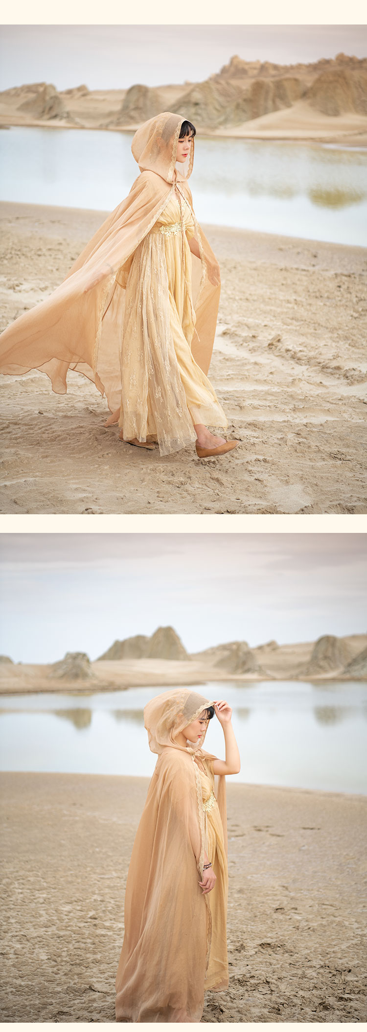 TIYIHAILEY Penghantaran Percuma 2021 Jubah Chiffon Vintaj Musim Bunga Musim Panas Pakaian Luar Bertudung Longgar Panjang Maxi Beige Witch Cardigan Lace
