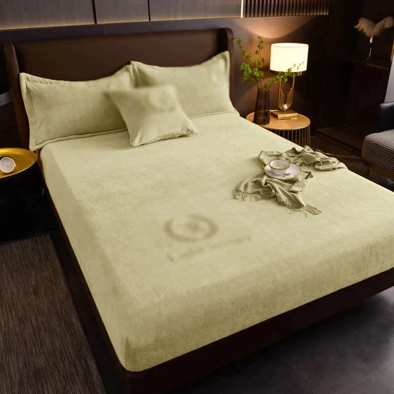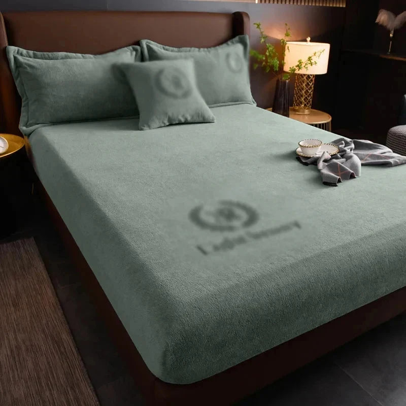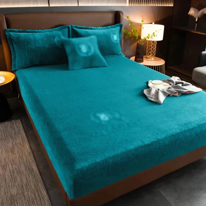 Sarung Tilam Hangat Musim Sejuk Cadar Dipasang Elastik Susu Gebu Sarung Katil Baldu Pasangan Lembut Katil Kelamin Mewah untuk Katil Rumah