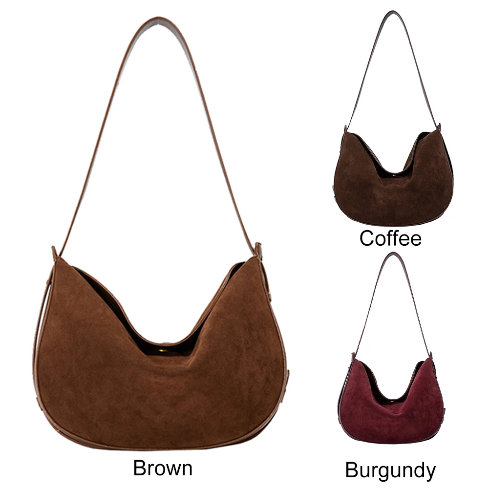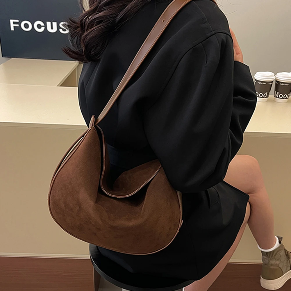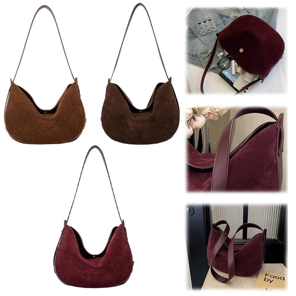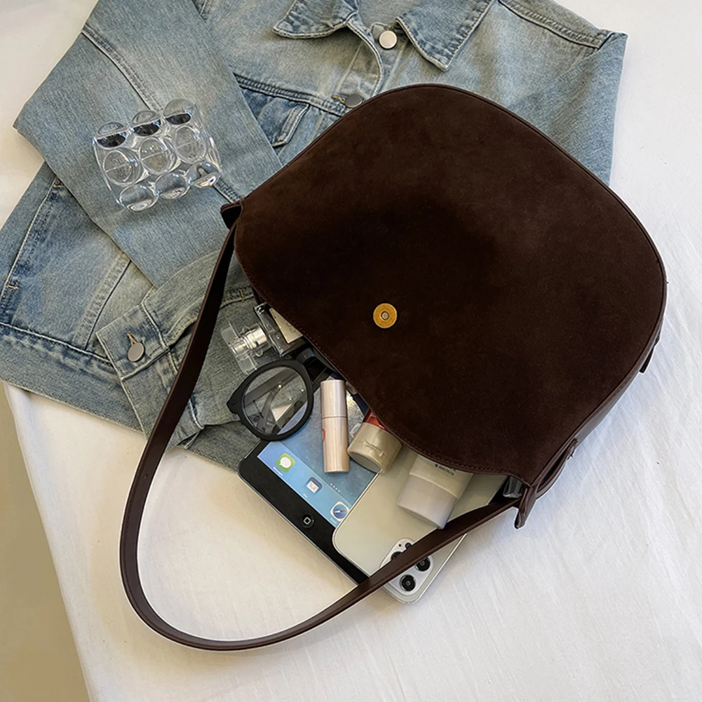 Women Suede Handbag Magnetic Closure Shoulder Bag Solid Crossbody Bag Retro Hobo Bag for Work Travel Shopping