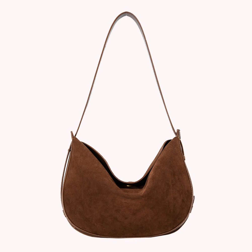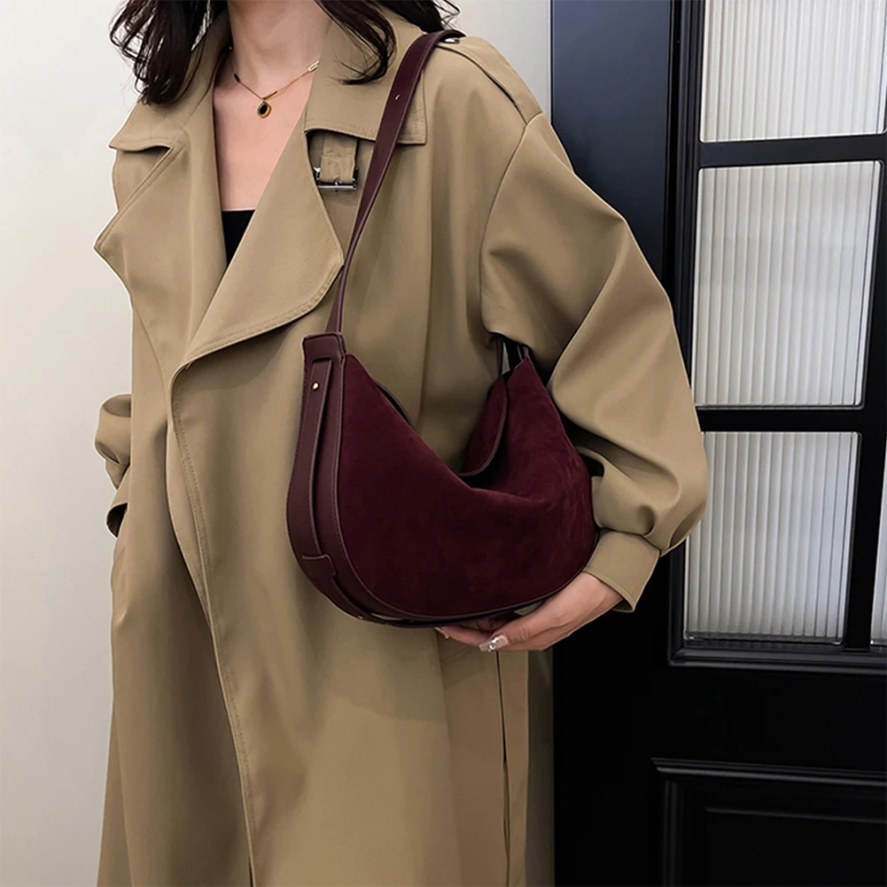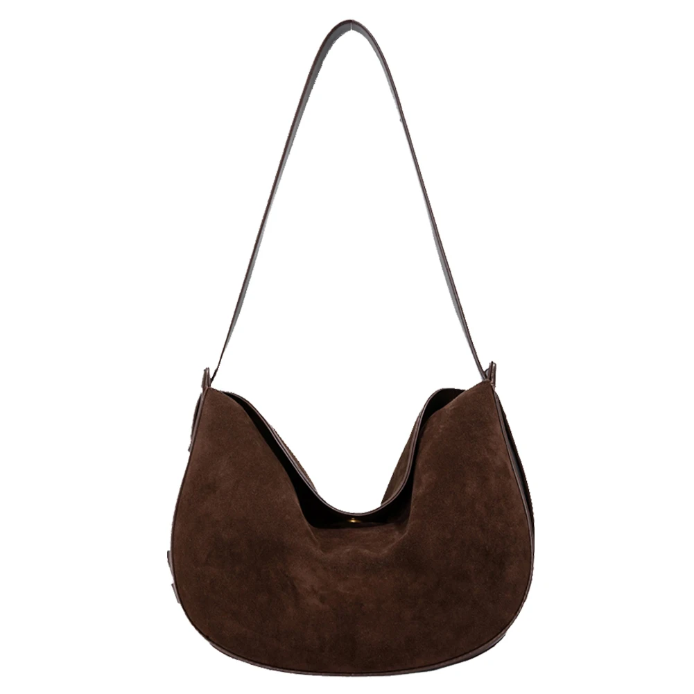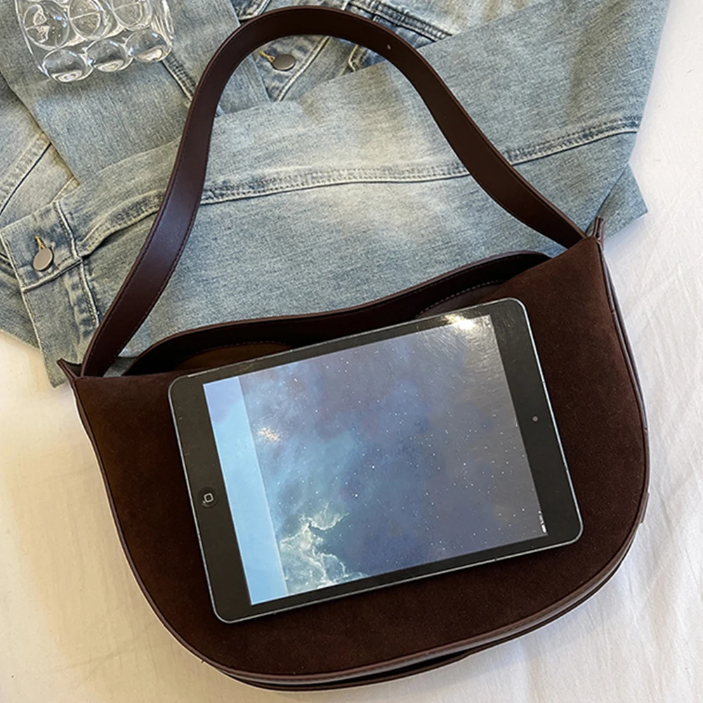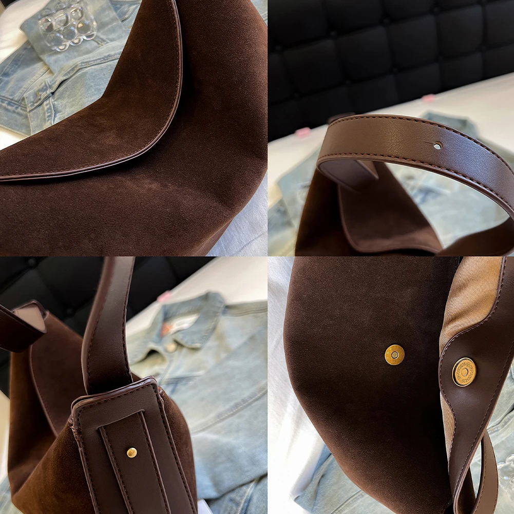 Women Suede Handbag Magnetic Closure Shoulder Bag Solid Crossbody Bag Retro Hobo Bag for Work Travel Shopping