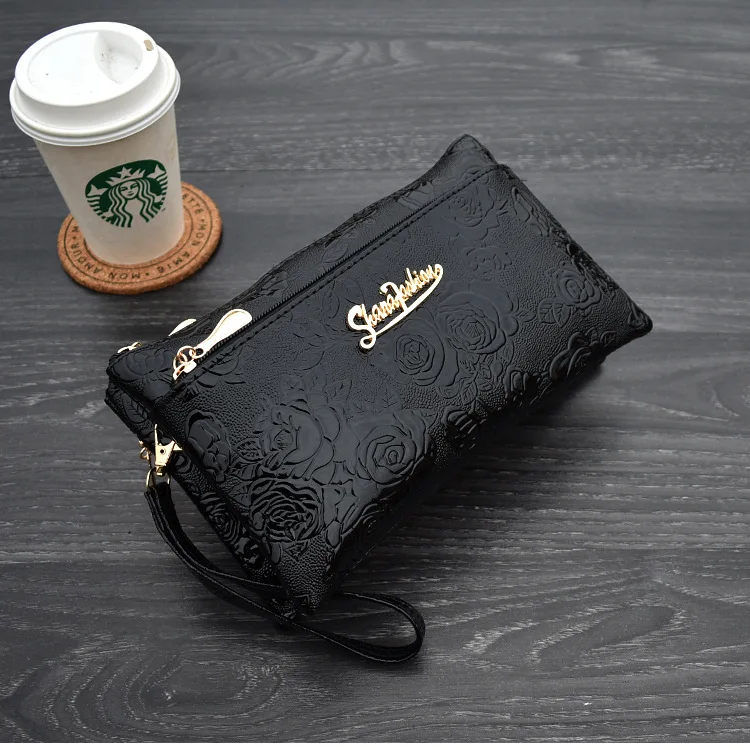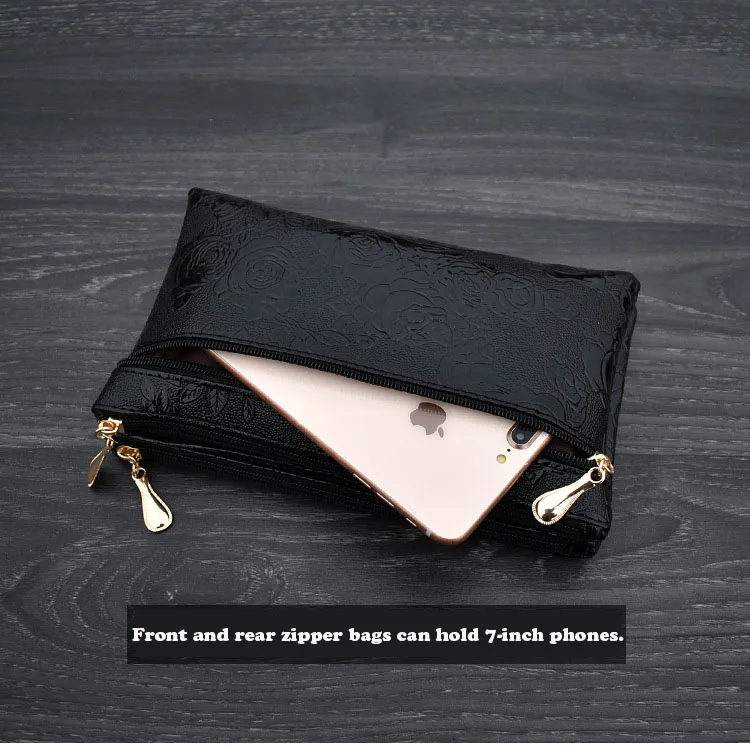 dompet wanita Empat zip beg cengkam panjang 3D knurling Kulit retro Dompet beg femme portfel damski gelang tangan kadın dompet telefon