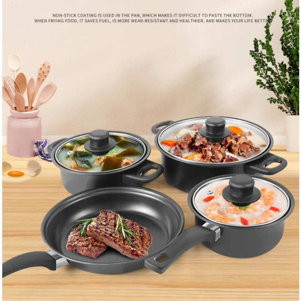 13 piece set of cookware set milk pot soup pot flat bottomed small frying pan lid and shovel to form a pot set