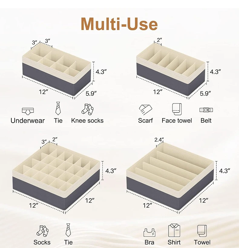 20 Grids Organizer for Socks Lingerie 8 Grids Tie Storage Box 7 Grids Bra Organizer Drawer Organizer Clothes Organizer in Closet