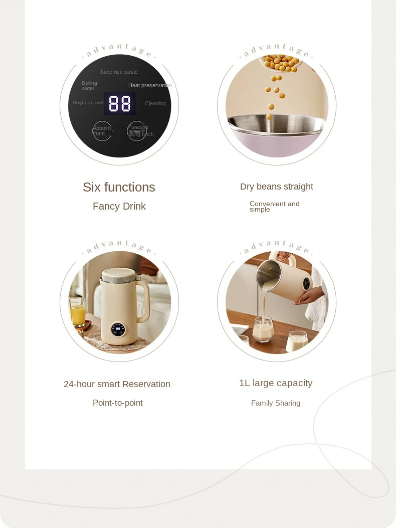 2024 New 1000ML Mini Soybean Milk Machine Automatic Heating Food Blender Intelligent Home-Use Wall Breaking Rice Paste Mixer