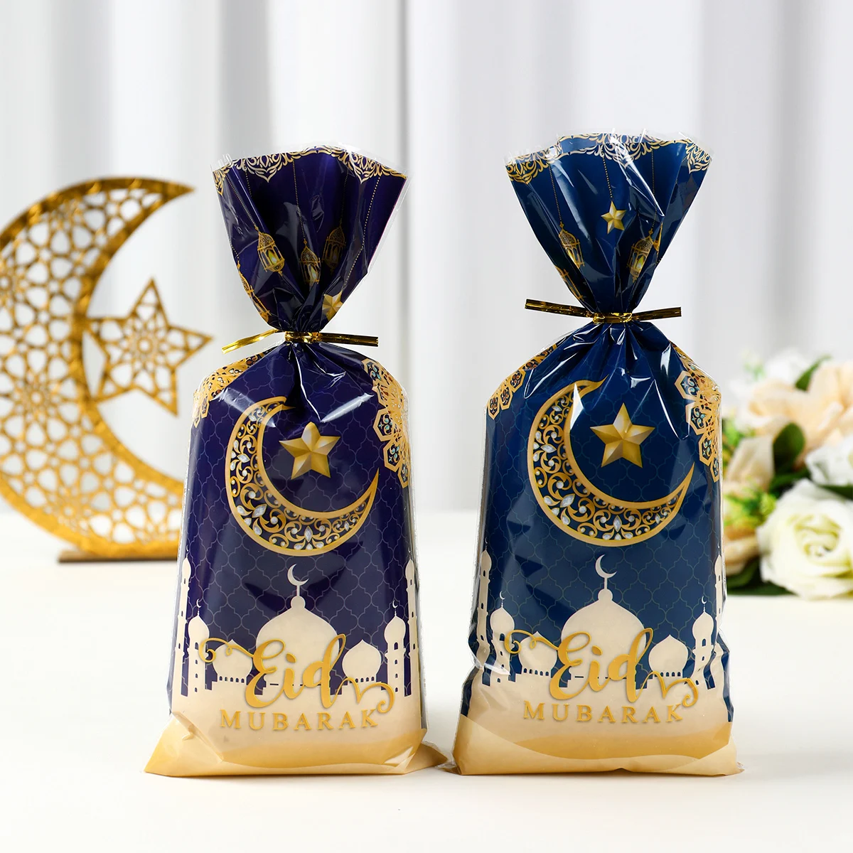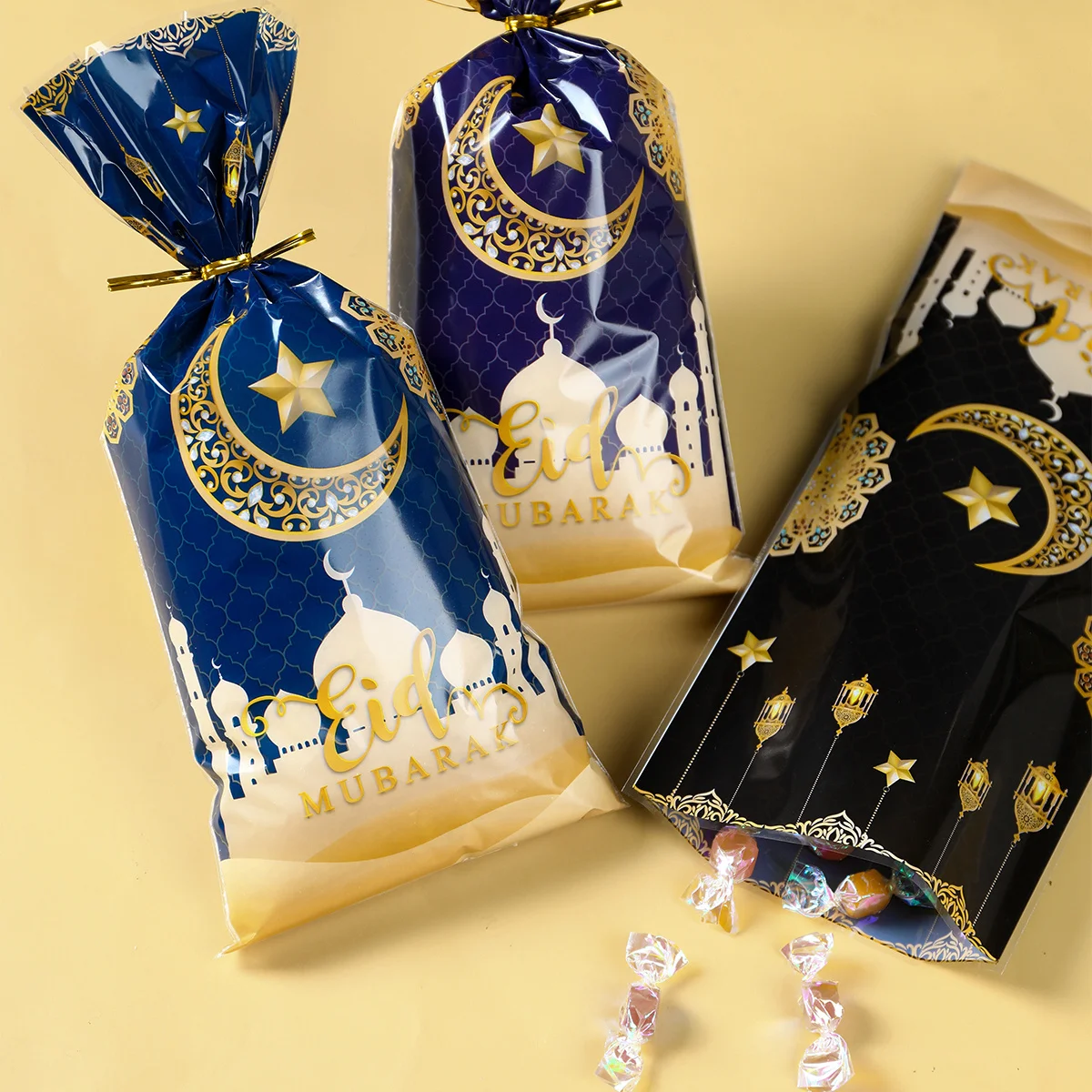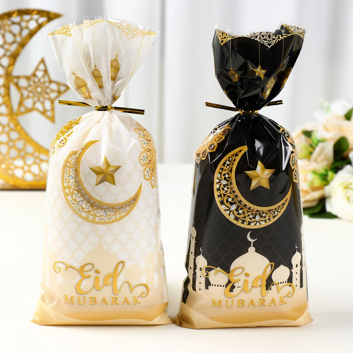 25/50/100pcs Eid Mubarak Gift Bag With Rope Candy Bag Ramadan Kareem Decor for Home Eid Al-fitr Islamic Muslim Party Supplies