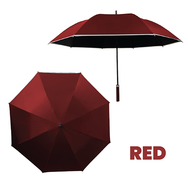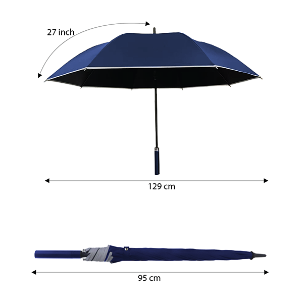 The 27" Auto-Open Inner Black Coated Reflective Strip Color Handle combines durability and style. Featuring a 190T pongee canopy with reflective strip, matte black inner coating, ABS handle with color matching, and full fiberglass ribs and frame. With auto-open and manual close, it offers reliable protection in any weather.