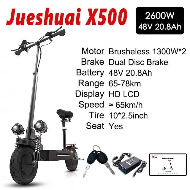 The electric scooter has 6000w powerful motor,it can help you ride faster in the road,no fear of going uphill free switching between single and double drives,ready to use.
