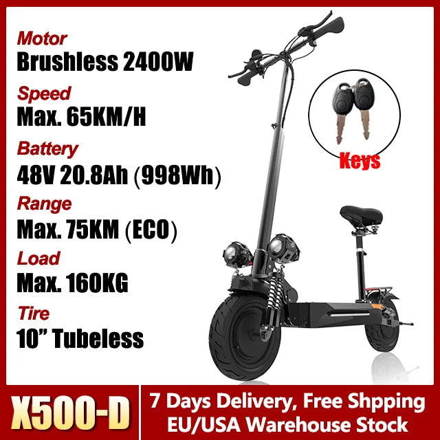 48V 60V 72V 1200W 2400W 3200W 6000W Single/Dual Drive Electric Scooter [85km/h Max ]E scooter Foldable Adult Skateboard Seat