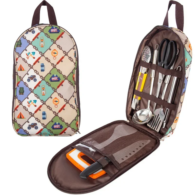 Large capacity, it canbe used to carry cutting board, food clamp, soup ladle, pancake turner and etc.