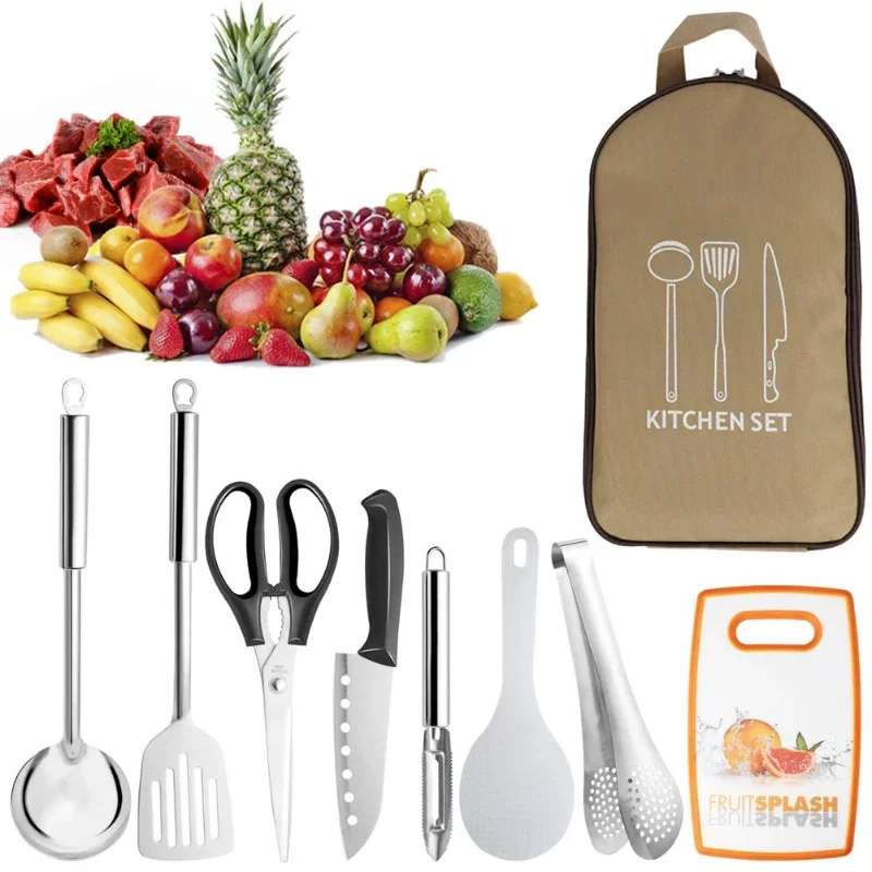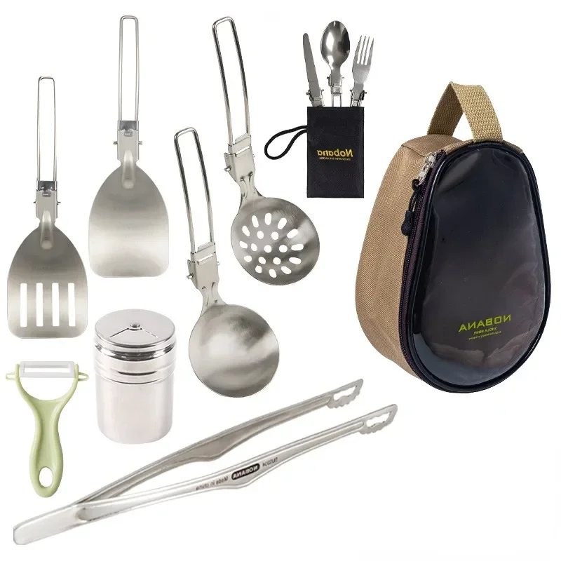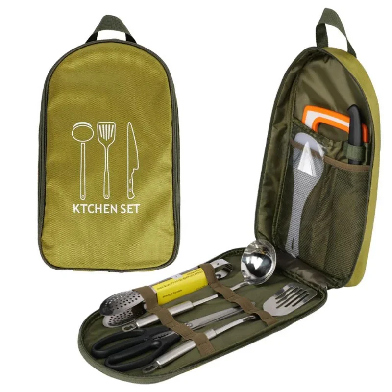 8Pcs/set Outdoor Camping Cookware Set With Knife Utensil Spoon Portable Picnic Kitchen Utensils Tableware Storage Handbag