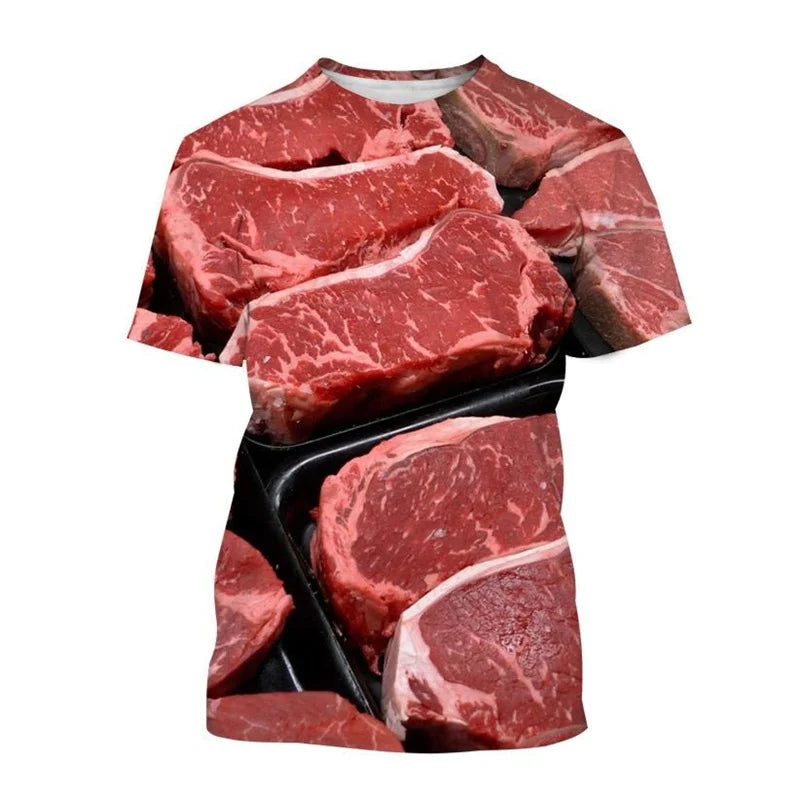 Creative Beef Mutton Meat T-shirt Men Women 3D Print Streetwear Personality T Shirt O-Neck Casual Shirt Tees Tops Male Clothing
