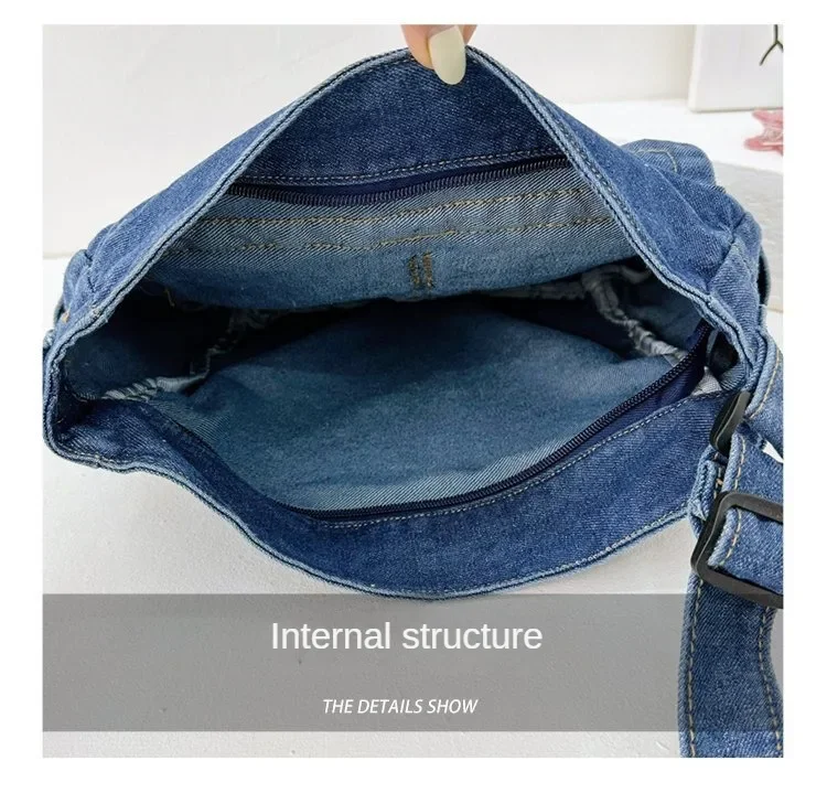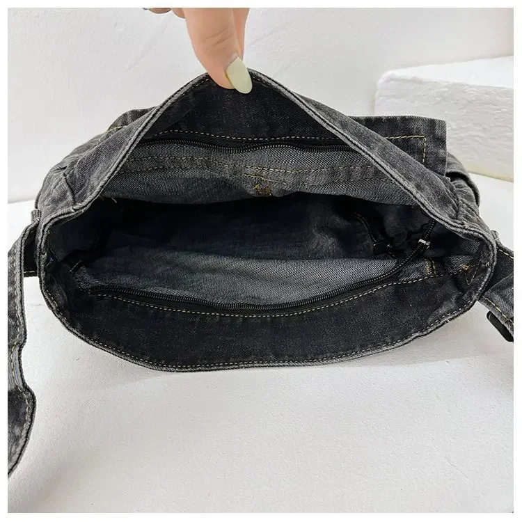 Denim Vintage Messenger Bag for Women Tote Handbag Fashion Jeans Crossbody Shoulder Bag Large Capacity Causal Ladies Satchel Bag