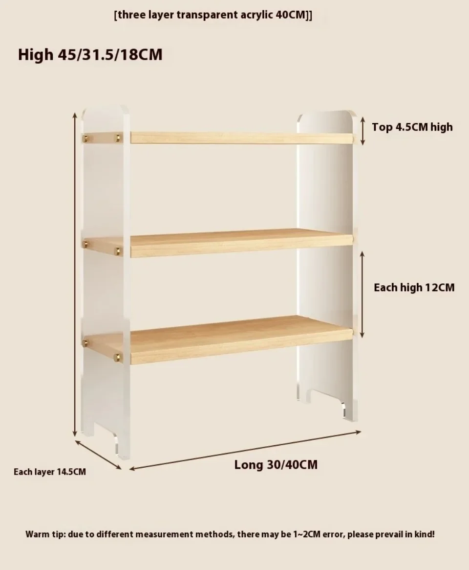Project Description: Desktop storage rack, acrylic desk bookshelf, office workstation multi-layer storage rack, student dormitory sorting rack.