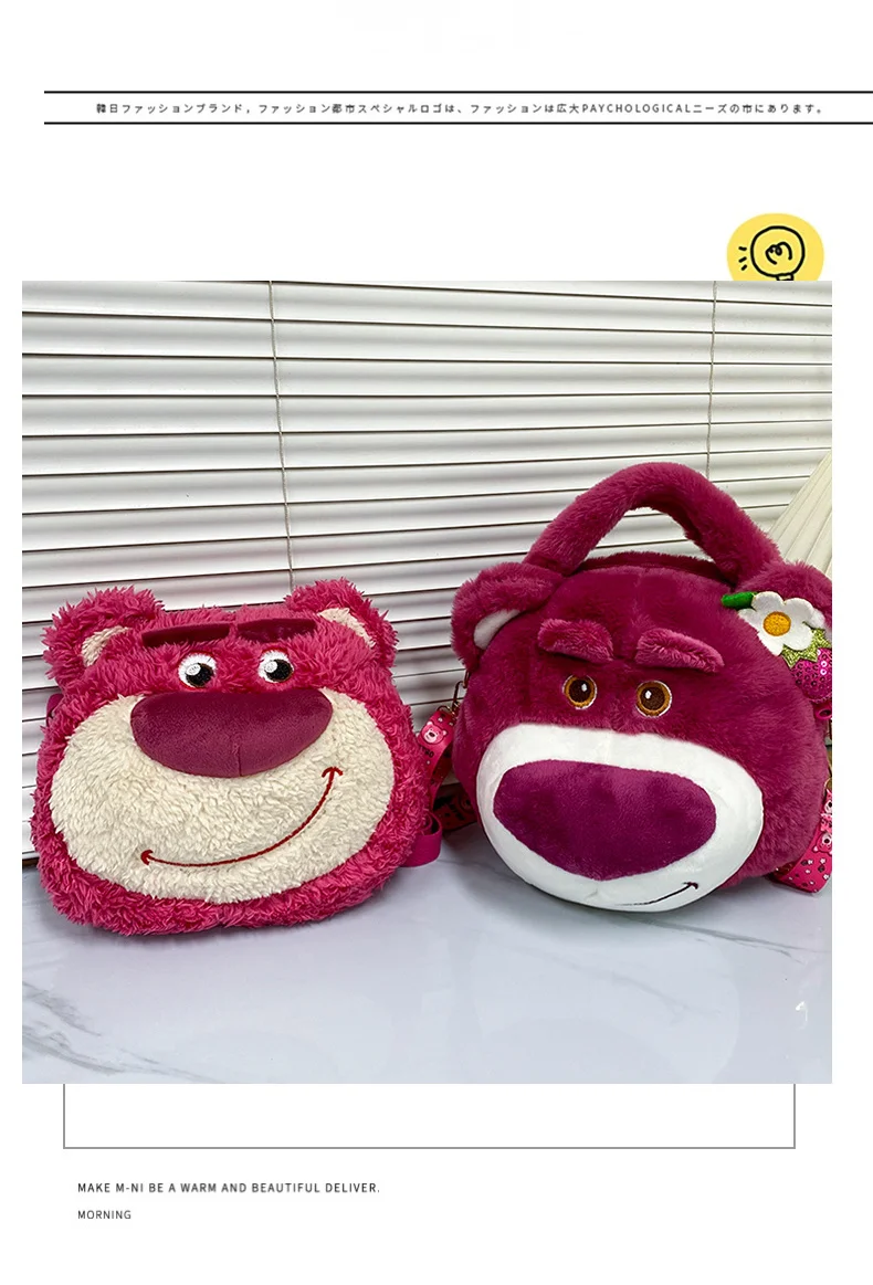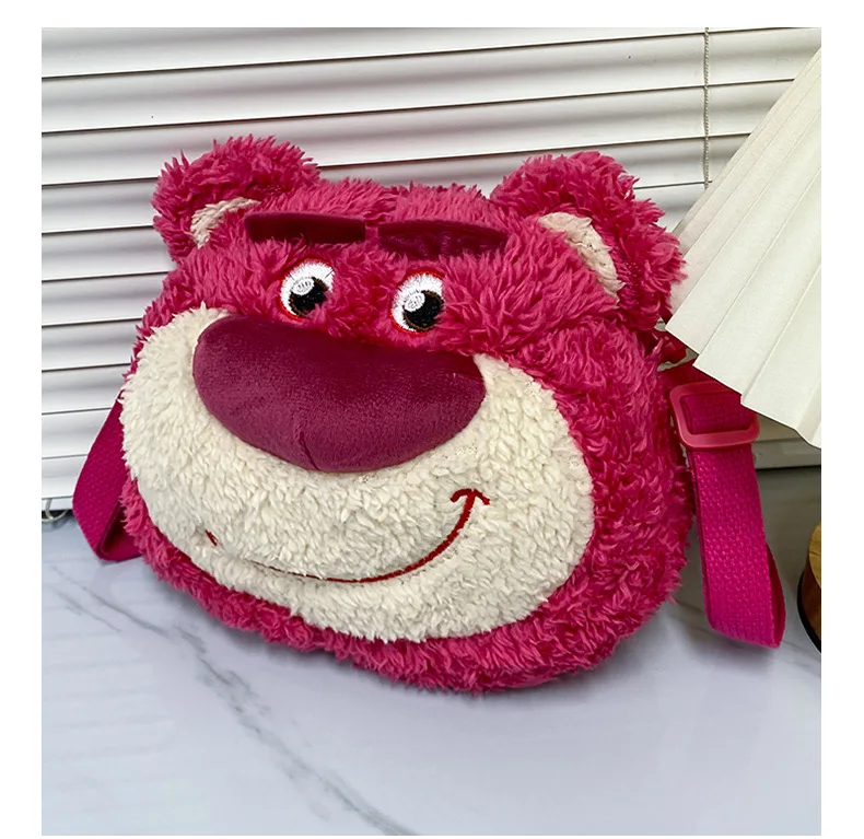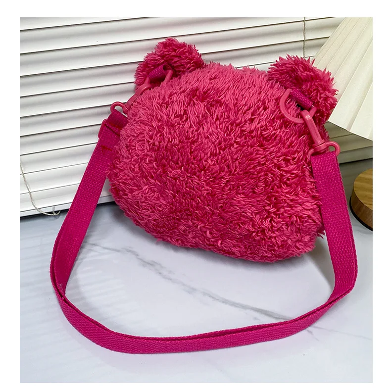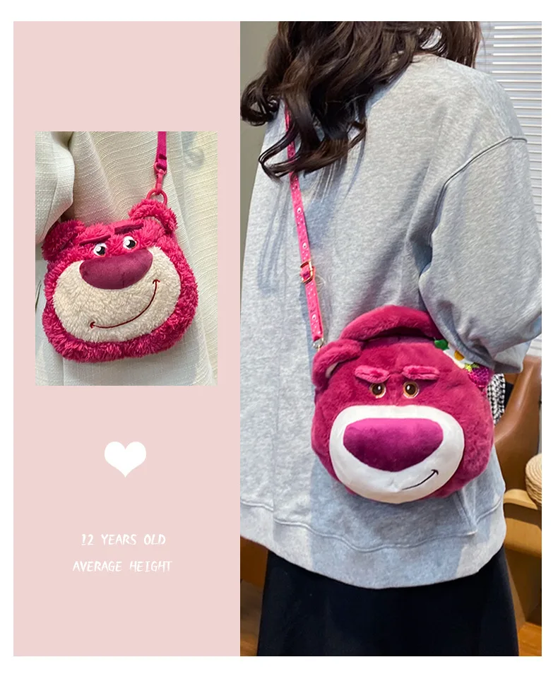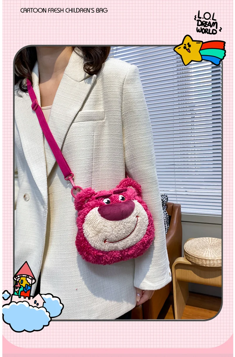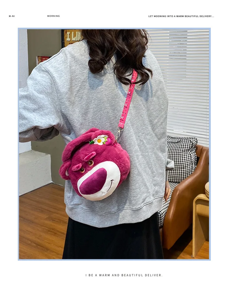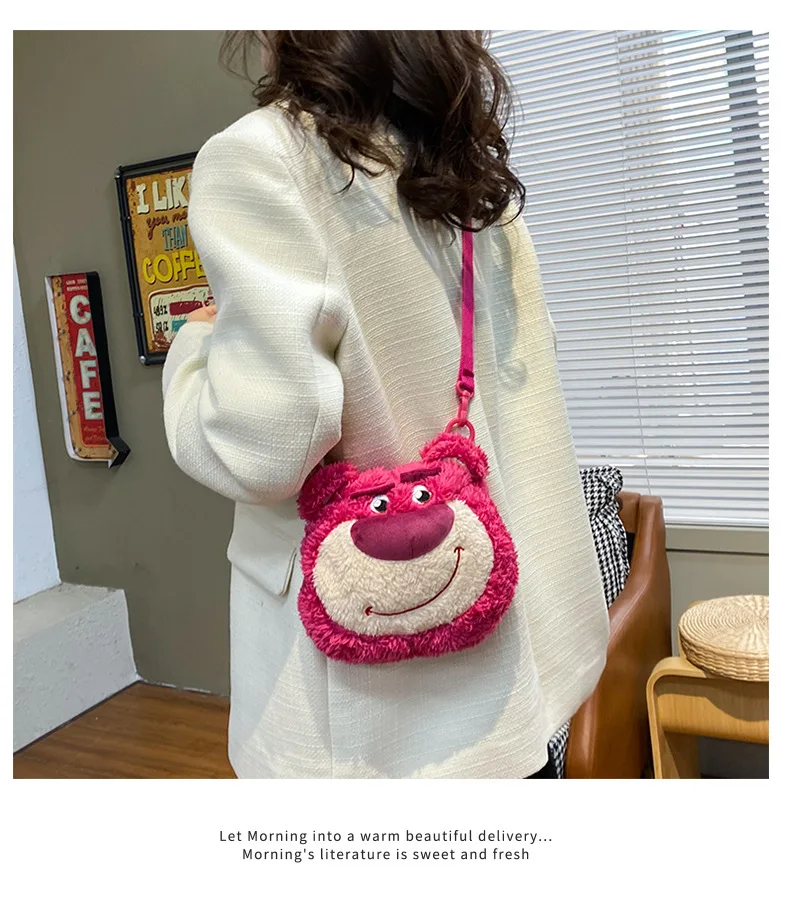 Disney Toy Story Lotso Coin Purse Crossbody Bag Cute Plush Shoulder Bag Cartoon Satchel Girl Student Bear Handbag with Zipper