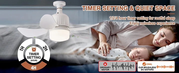 Our light socket fan retains the previous settings when turned off, allowing it to restore to the same state when turned on again.