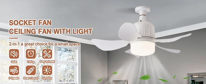 Compatible with E26 with remote control, make socket ceiling fan installs as a regular light bulb. This fan for socket light is very easy to install, no wiring, no tools, and you can easily take it off and move it to another socket.