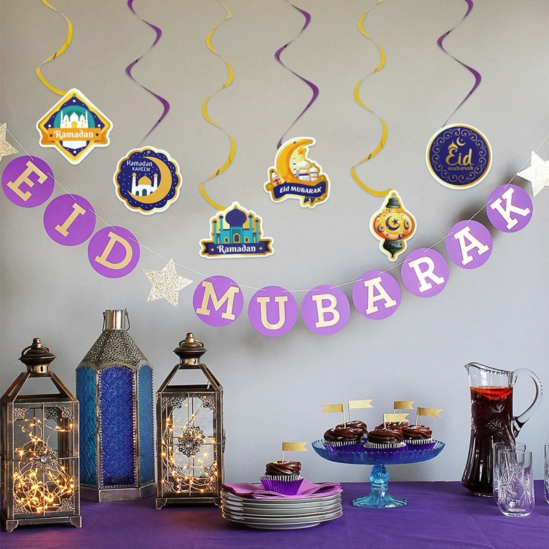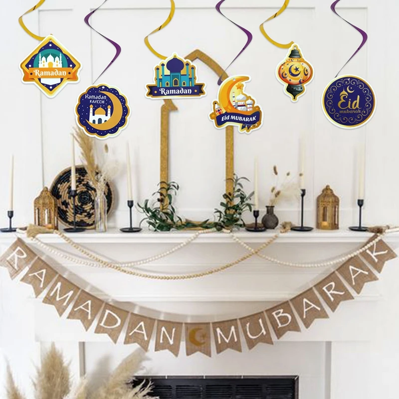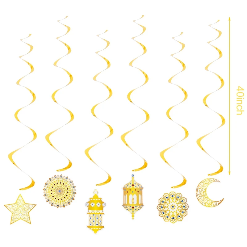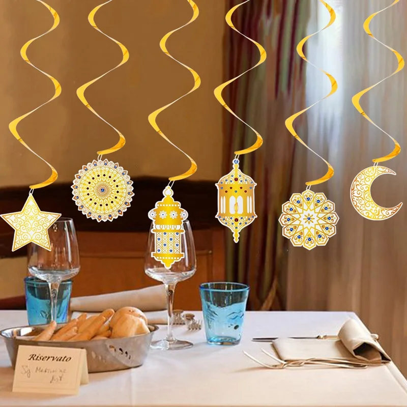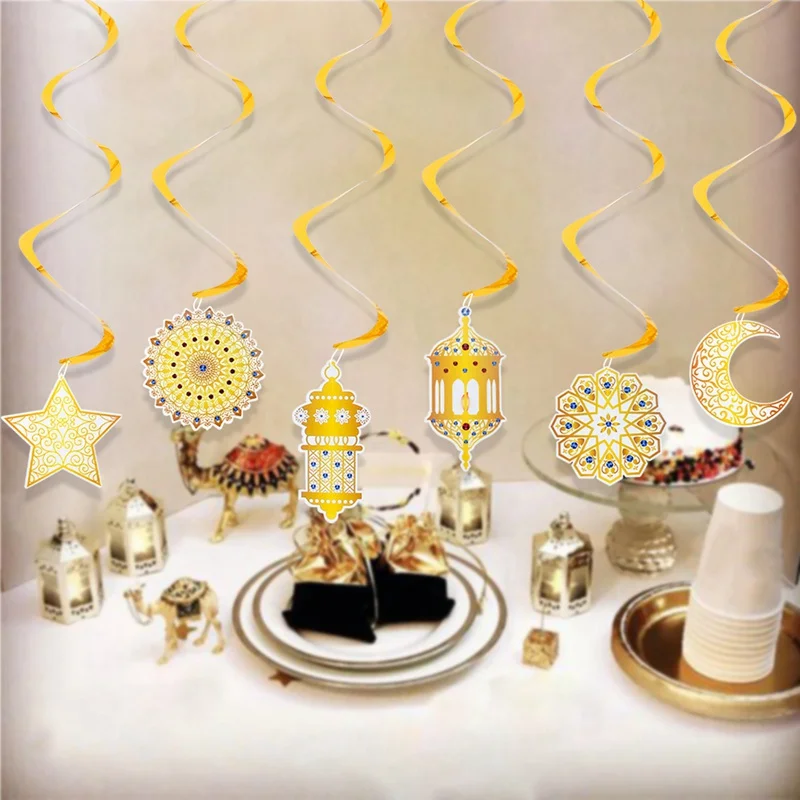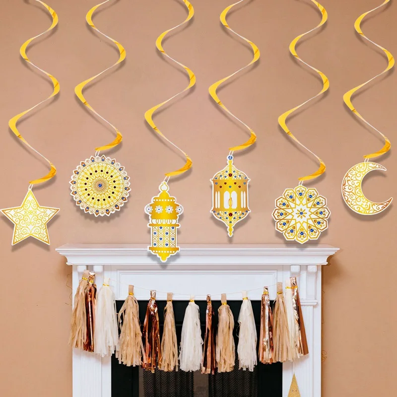 Eid Mubarak Banner Decor For Home Gold Spiral Eid Pendant Bunting Islamic Muslim Hajj Mubarak Festival Party DIY Ramadan Decor