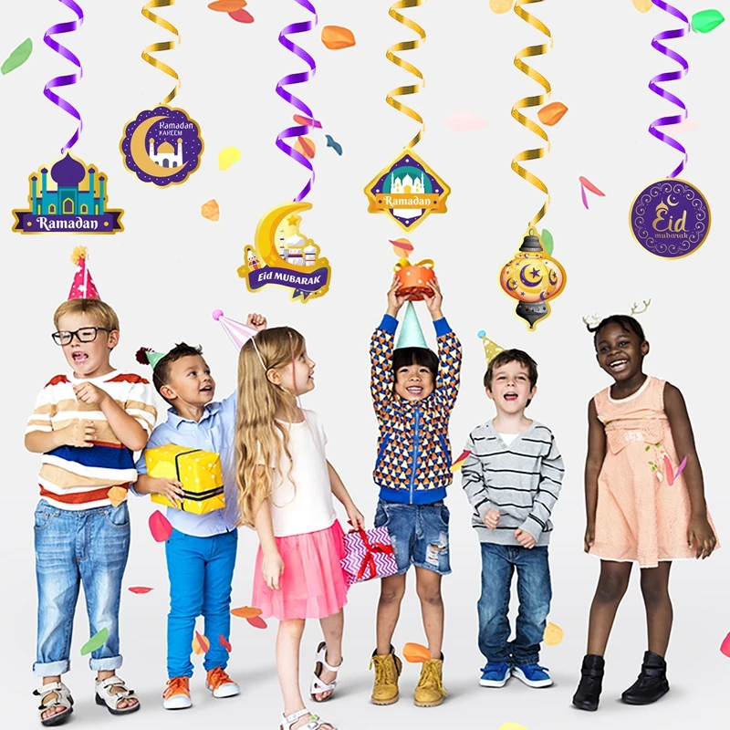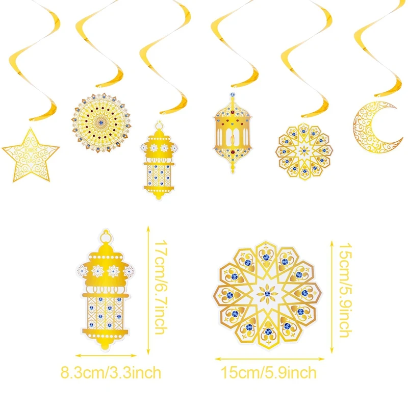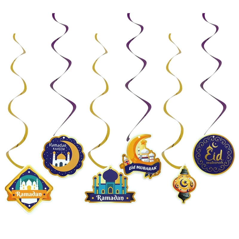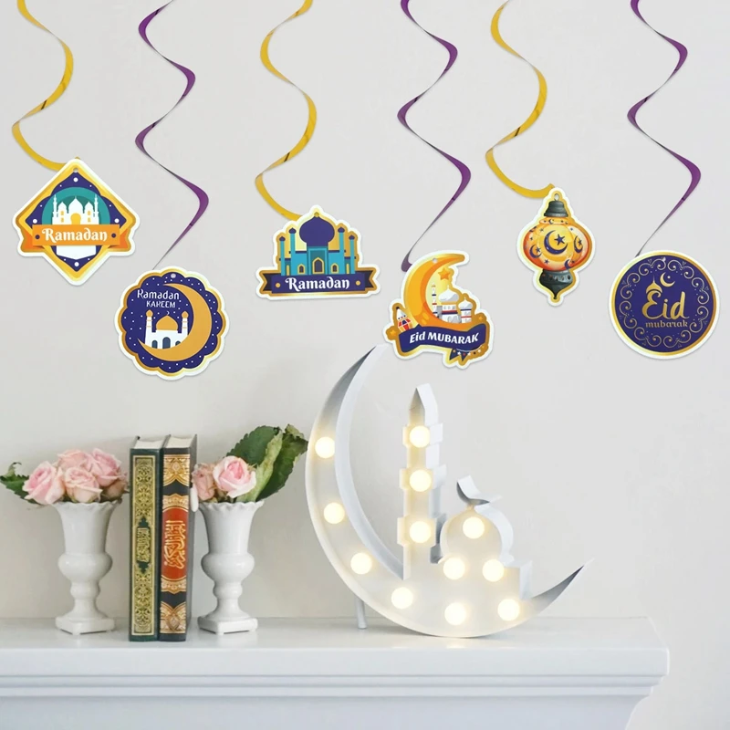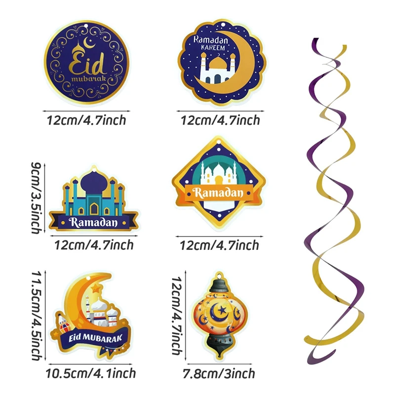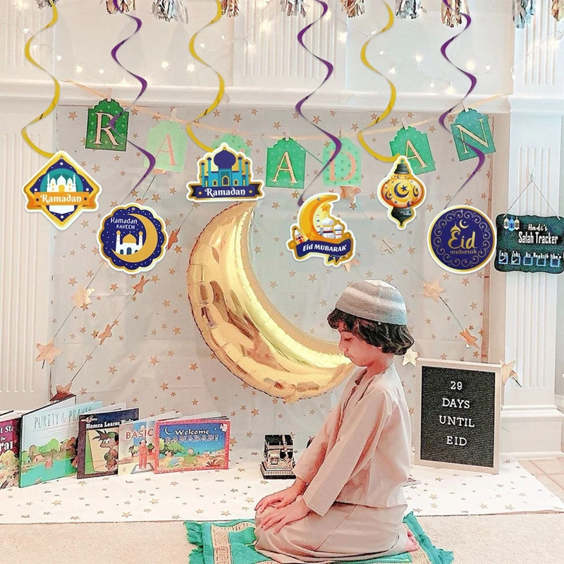 Eid Mubarak Banner Decor For Home Gold Spiral Eid Pendant Bunting Islamic Muslim Hajj Mubarak Festival Party DIY Ramadan Decor