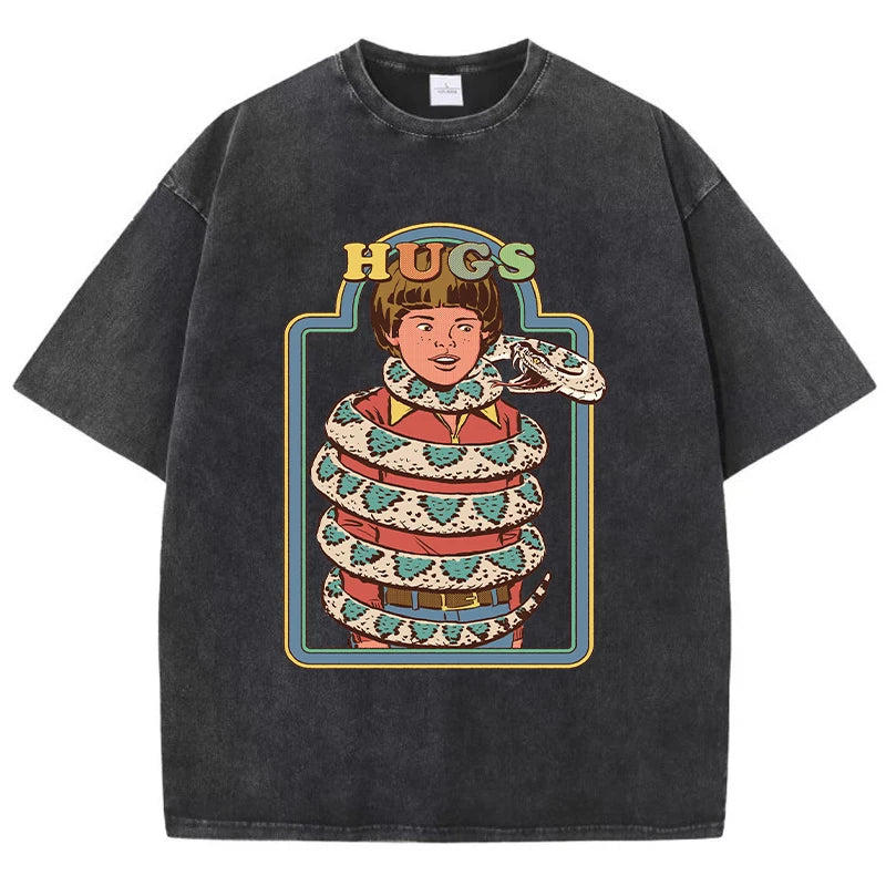 Entangled By Snakes Print Female T Shirts Hip Hop Breathable Washed T-Shirt Street Summer New Clothes Casual Versatile Tshirts