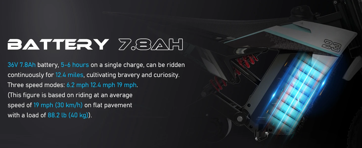 ★POWERFUL MOTOR & BATTERY LIFE: This electric dirt bike is equipped with a powerful 800W motor, which can continuously provide power of 19mph. 36V 7.8Ah battery makes its cruising range up to 12.4miles. 5 hours of charging on a single charge, enjoy a smooth ride!