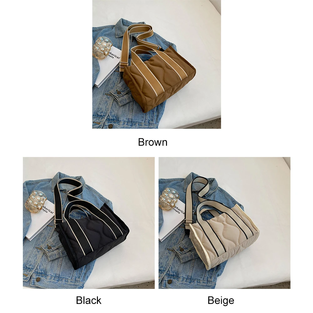 Fashion Handbag Cotton Padded Women Sling Crossbody Bag Quilted Hit Color Portable Zipper Autumn Winter Purse for Office Travel