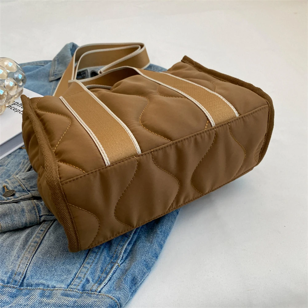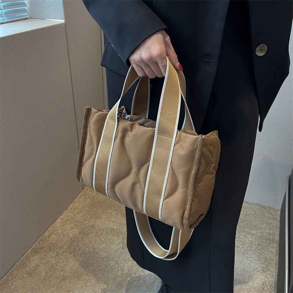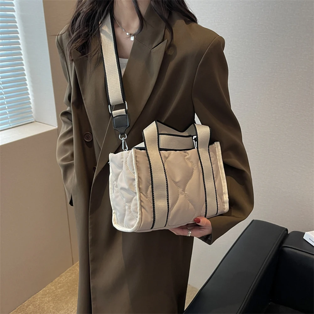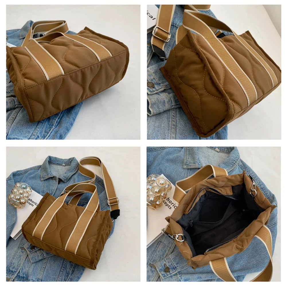 Fashion Shoulder Tote Bags Cotton Padded Sling Crossbody Bag Quilted Hit Color Portable Zipper Women Autumn Winter Purse for Office Travel