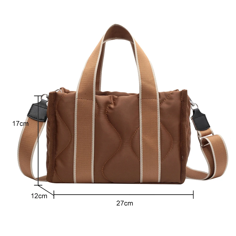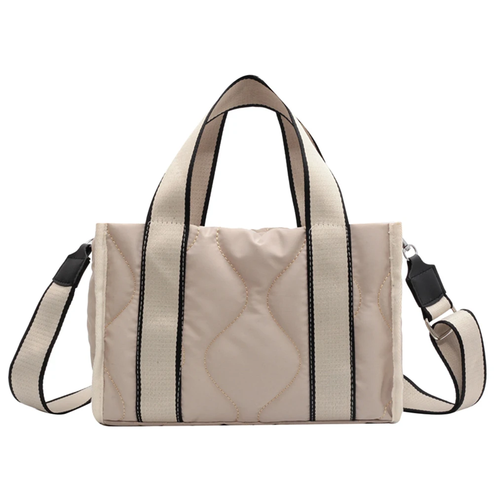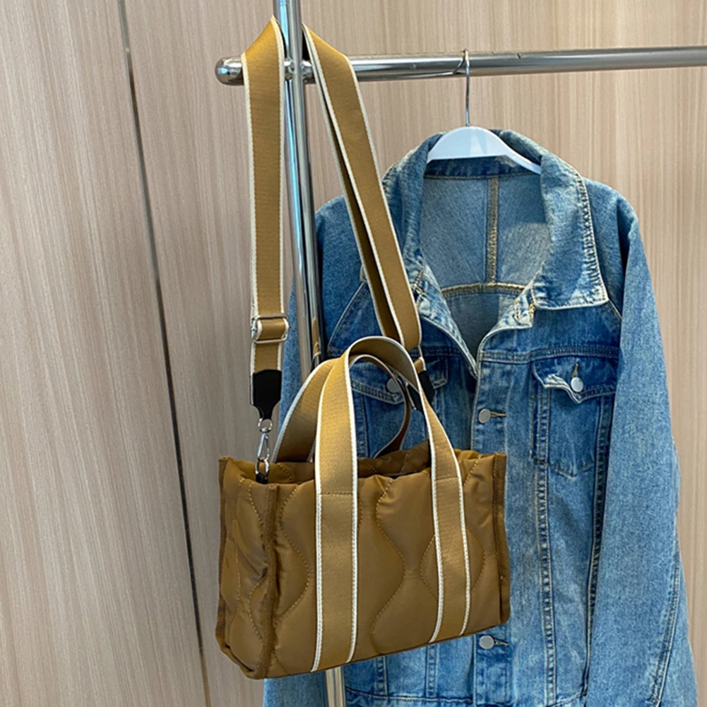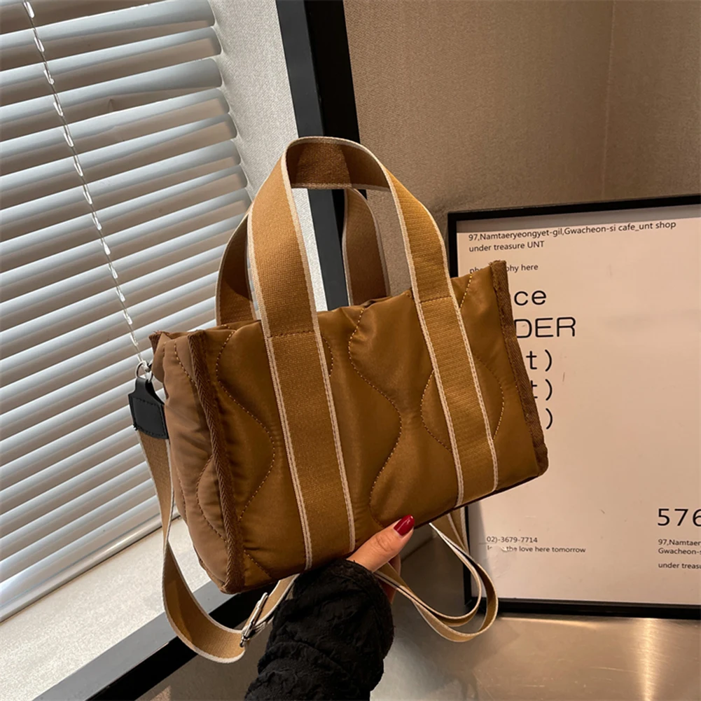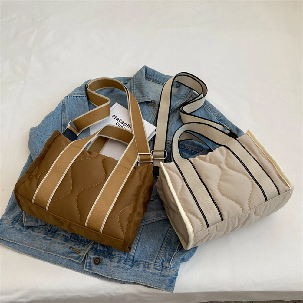 Fashion Shoulder Tote Bags Cotton Padded Sling Crossbody Bag Quilted Hit Color Portable Zipper Women Autumn Winter Purse for Office Travel