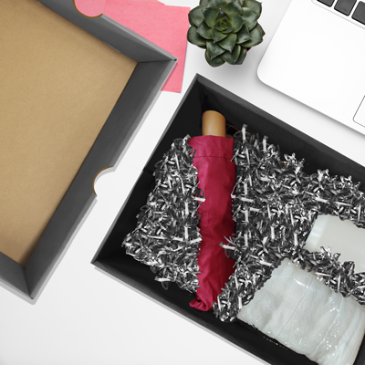 Grey Gift Box 1 Compartment with Shredded Paper- L Size