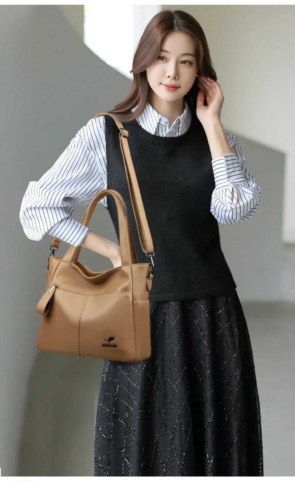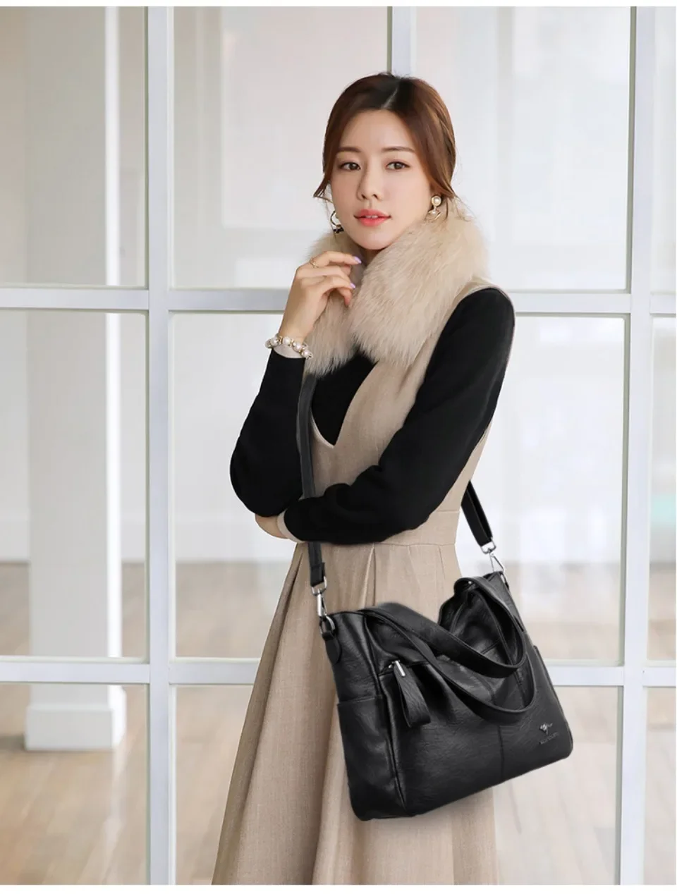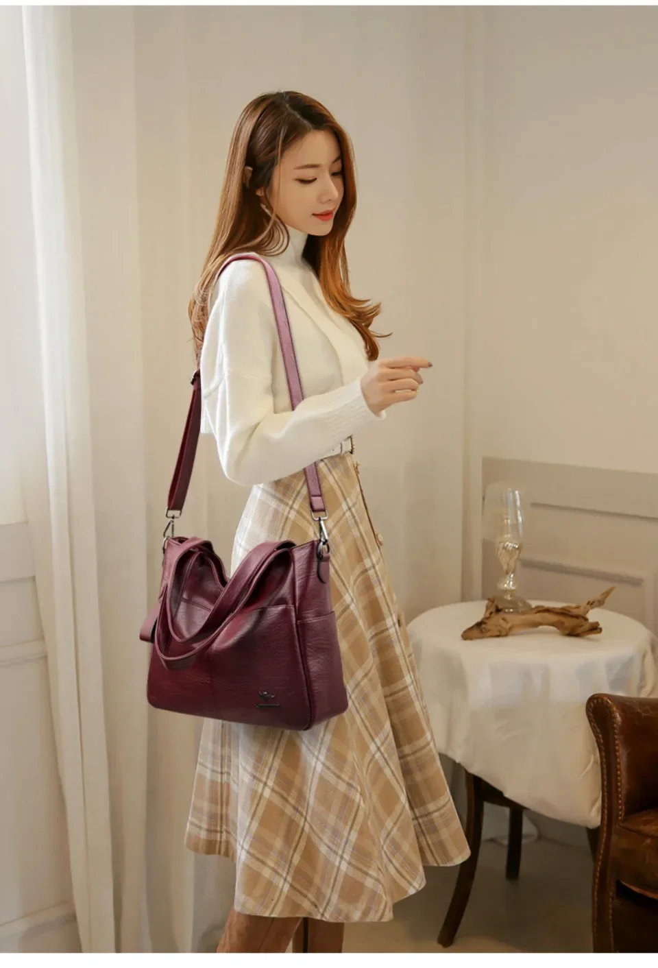 High Quality Soft Genuine PU Leather Messenger Bags Women Leather Handbag Luxury Satchel Female Shoulder Crossbody Sac Tote Bag