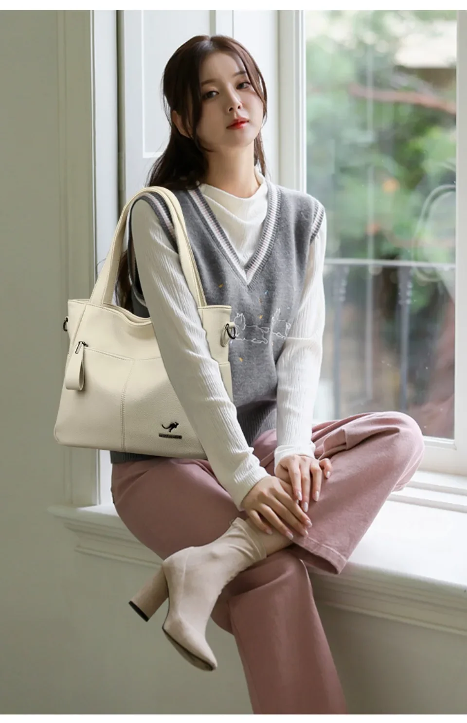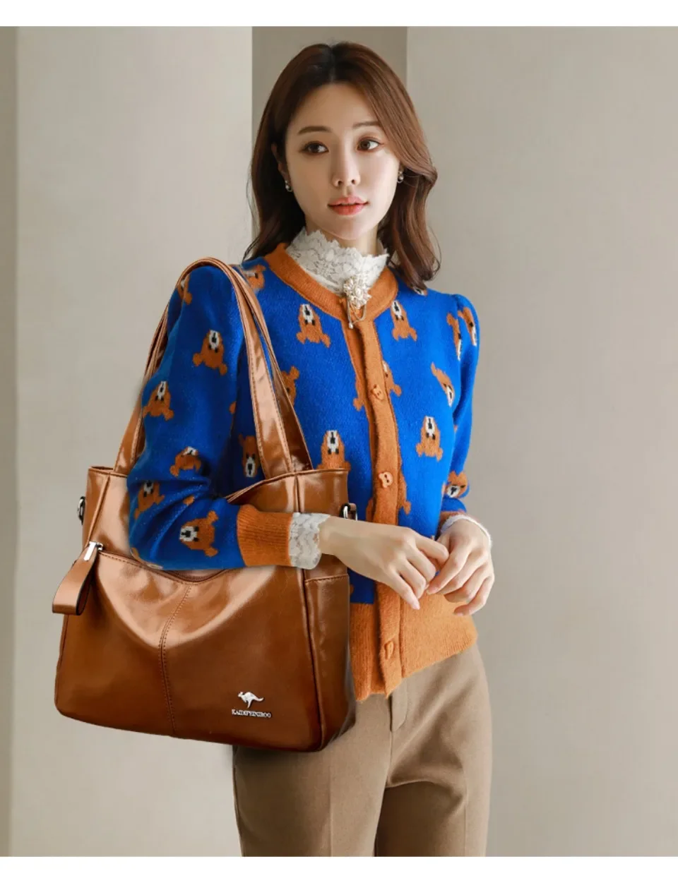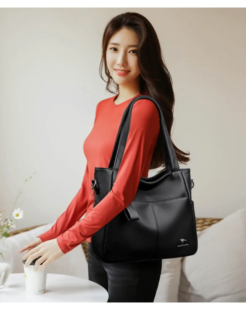 High Quality Soft Genuine PU Leather Messenger Bags Women Leather Handbag Luxury Satchel Female Shoulder Crossbody Sac Tote Bag