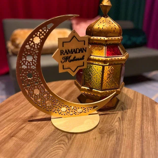 Islamic Decor Eid Gift Ramadan Table Decor Wooden Crescent Moon Ramadan Eid Moon