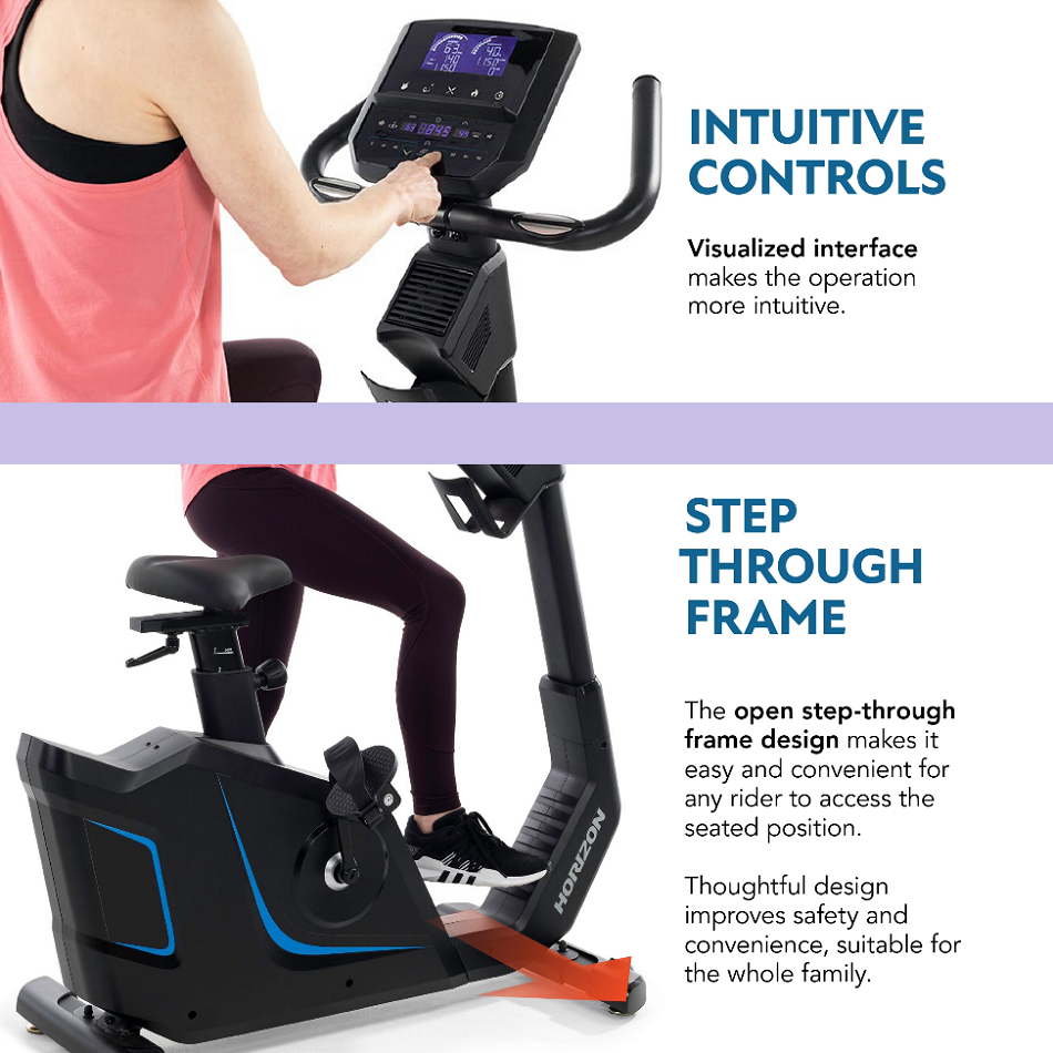The Horizon 5.0U upright fitness bike connects to popular cycling and tracking apps with Bluetooth FTMS technology. Choose one of the goal oriented built-in programs or set your own pace using 100 levels of resistance easily adjusted at the touch of a button. The Horizon 5.0U provides unlimited workout variety at an unbeatable value.