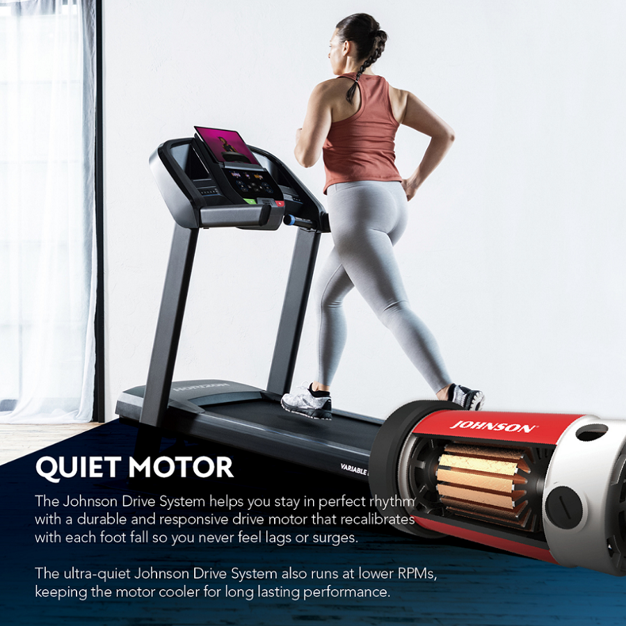 The Johnson Drive System helps you stay in perfect rhythm with a durable and responsive drive motor that recalibrates with each foot fall so you never feel lags or surges.