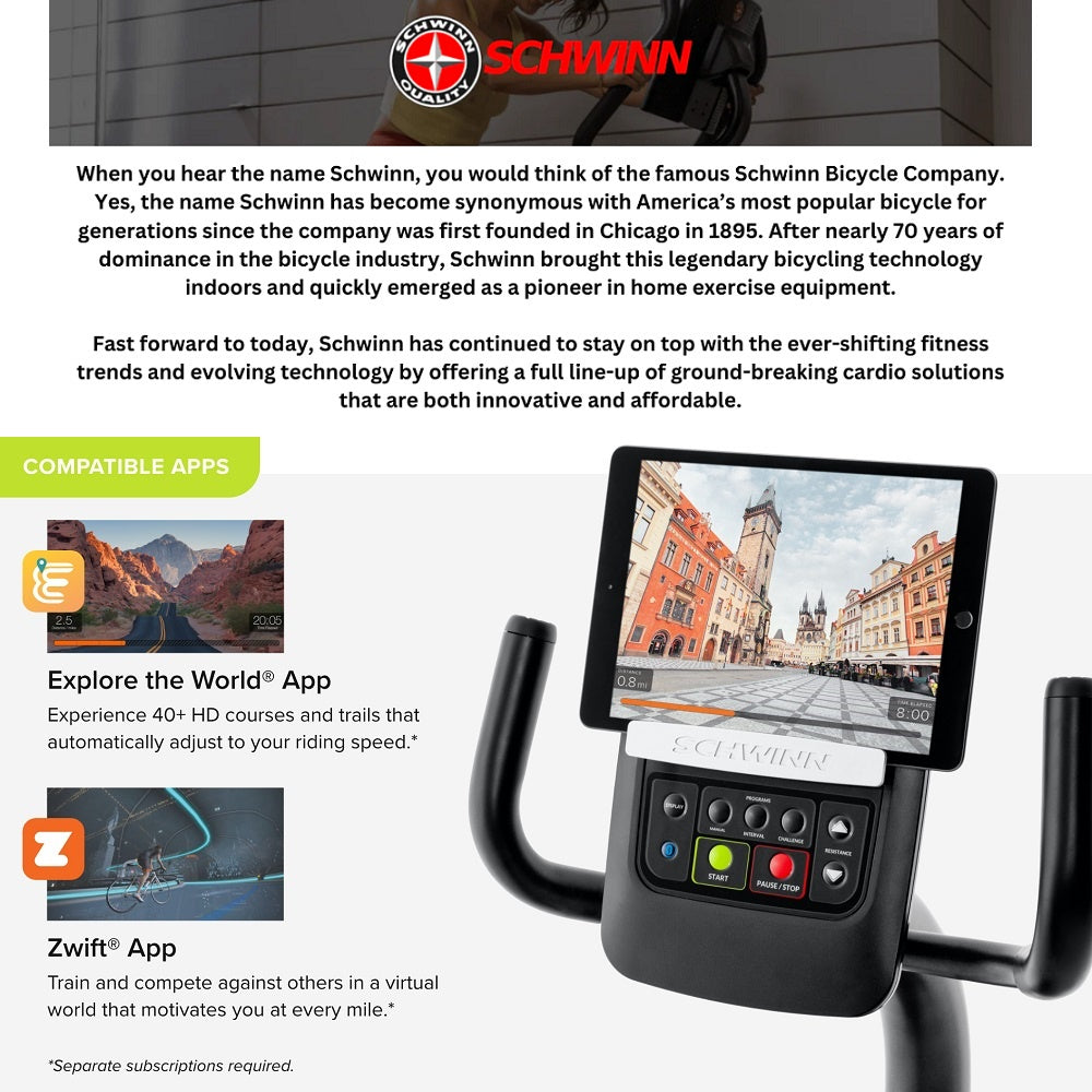 Connect with popular cycling apps like Explore the World®, Zwift®, and Kinomap® (separate subscriptions required).