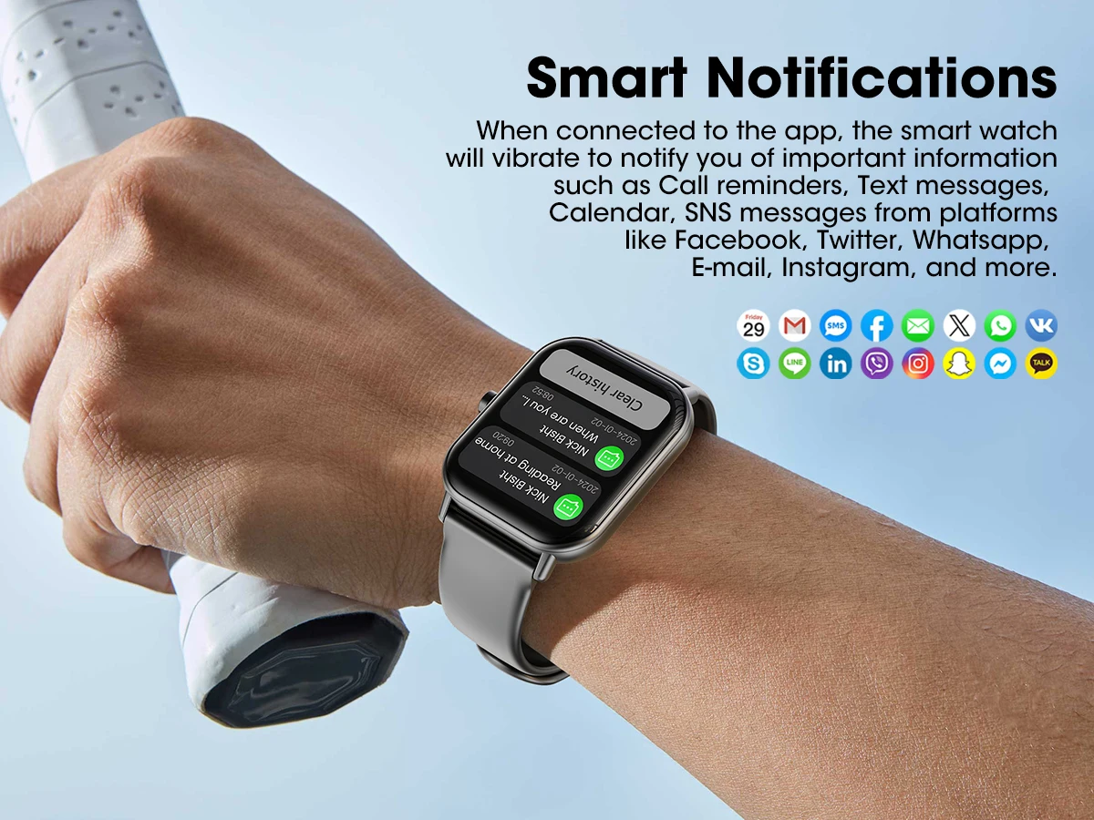 Information reminder, there are function activation switches on the APP side (for mobile applications such as incoming calls, SMS, WeChat, QQ, Facebook, Twitter, WhatsApp, Line, Instagram, Snapchat, Skype, etc.), as well as reminders for prolonged sitting, alarms, drinking water, taking medication, etc