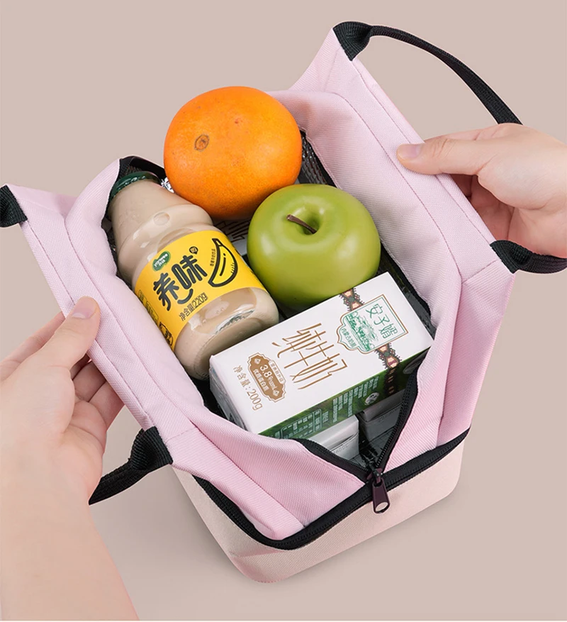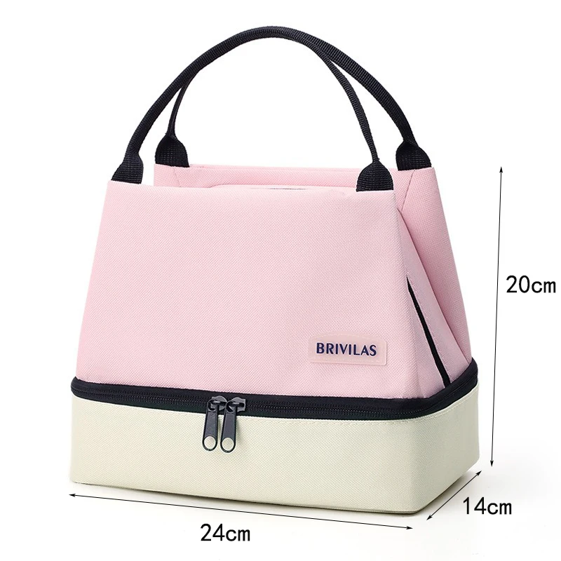 The large capacity double-layer lunch bag adopts an innovative compartment design, with separate upper and lower layers for easy differentiation of dry and wet food or storage of different dishes, easily meeting your dietary needs for the whole day.