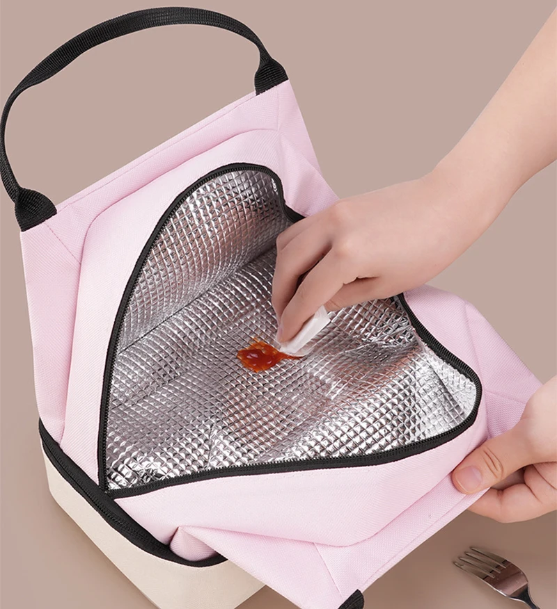 Unique design and soft color scheme showcase a simple and fashionable appearance. The internal aluminum foil is easy to clean, reduces stains and residual odors, maintains hygiene inside the bag, and has strong practicality, making it an ideal choice for you to carry every day.