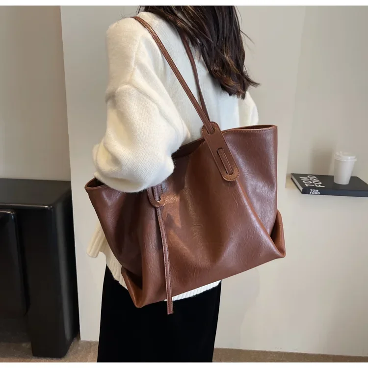 Large Capacity Women's Tote Bag 2024 Winter Fashion Trend Leather Shoulder Bags Office Handbag Fashion Lady Commuter Bags