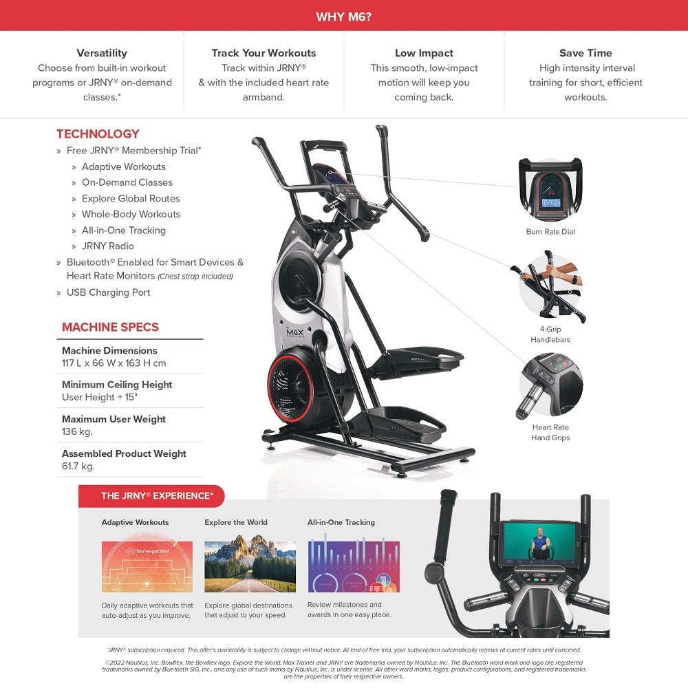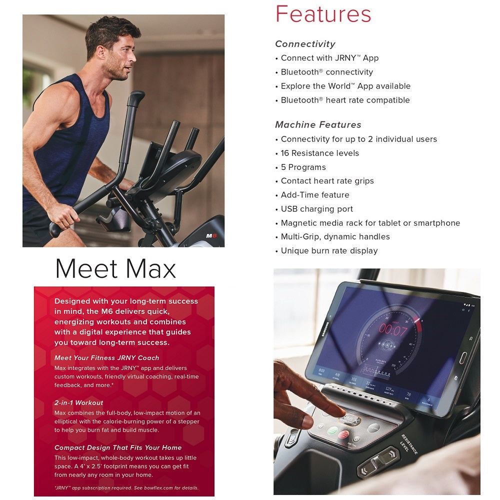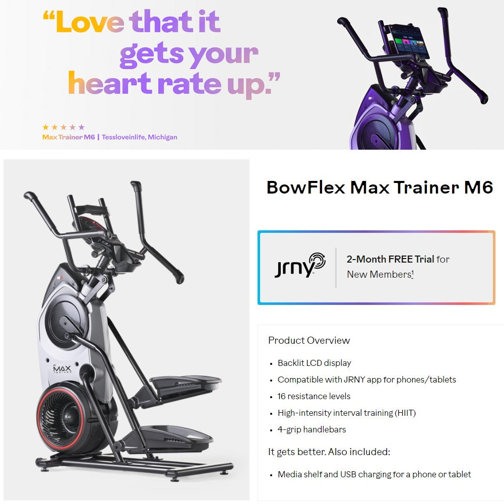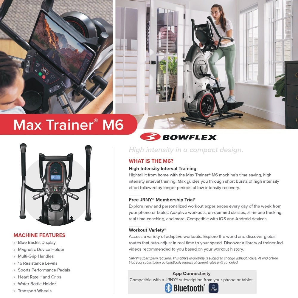 Maximize your fitness journey with the Max Trainer® M6 with the Bowflex JRNY™ App* for a 2 months free trial.
