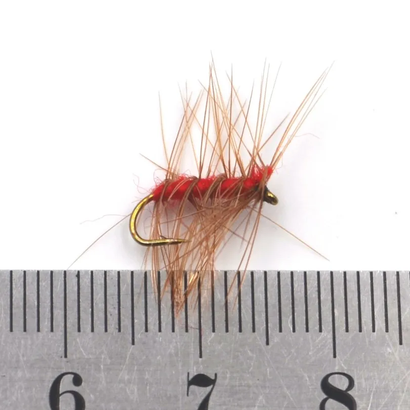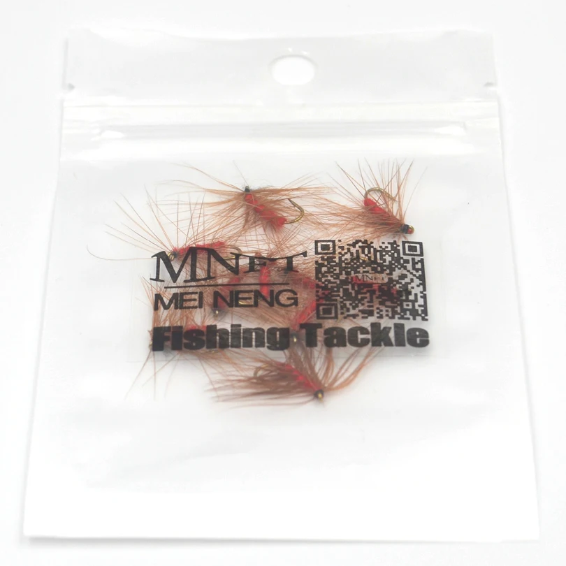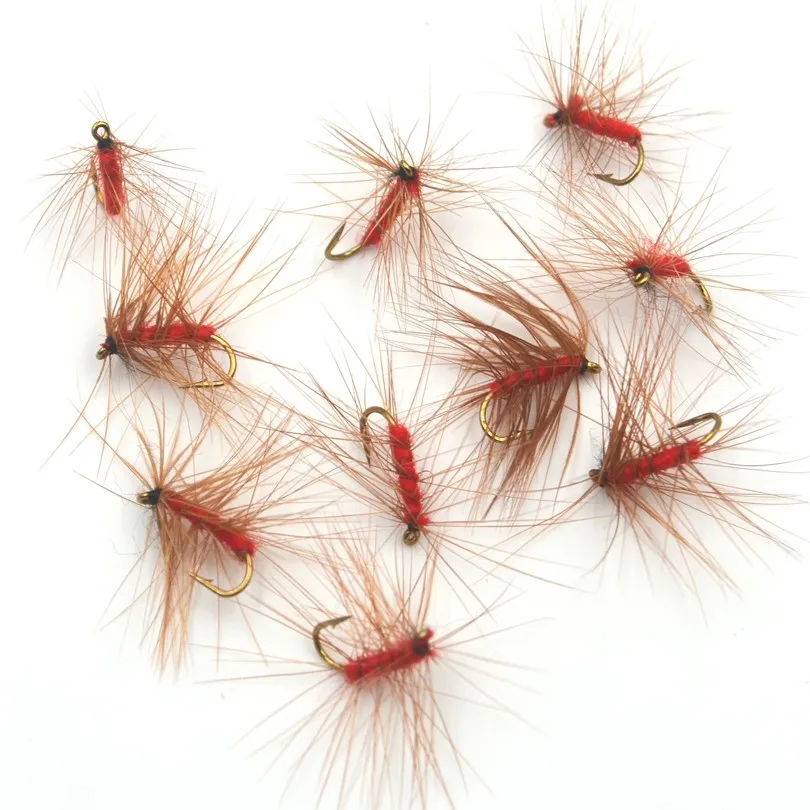 MNFT 10PCS Fly Fishing Trout Fish Dry Hook Red Body Brown feathers Bait 14# Artificial Fly Fishing Bait