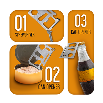 Introducing the RAMBO 11-in-1 Survival Tool Kit – a versatile tool kit that will help you survive through hard times. This pocket-sized tool are desgined for both portability and rich in features that will aid you during camping or exploring through thick forests.