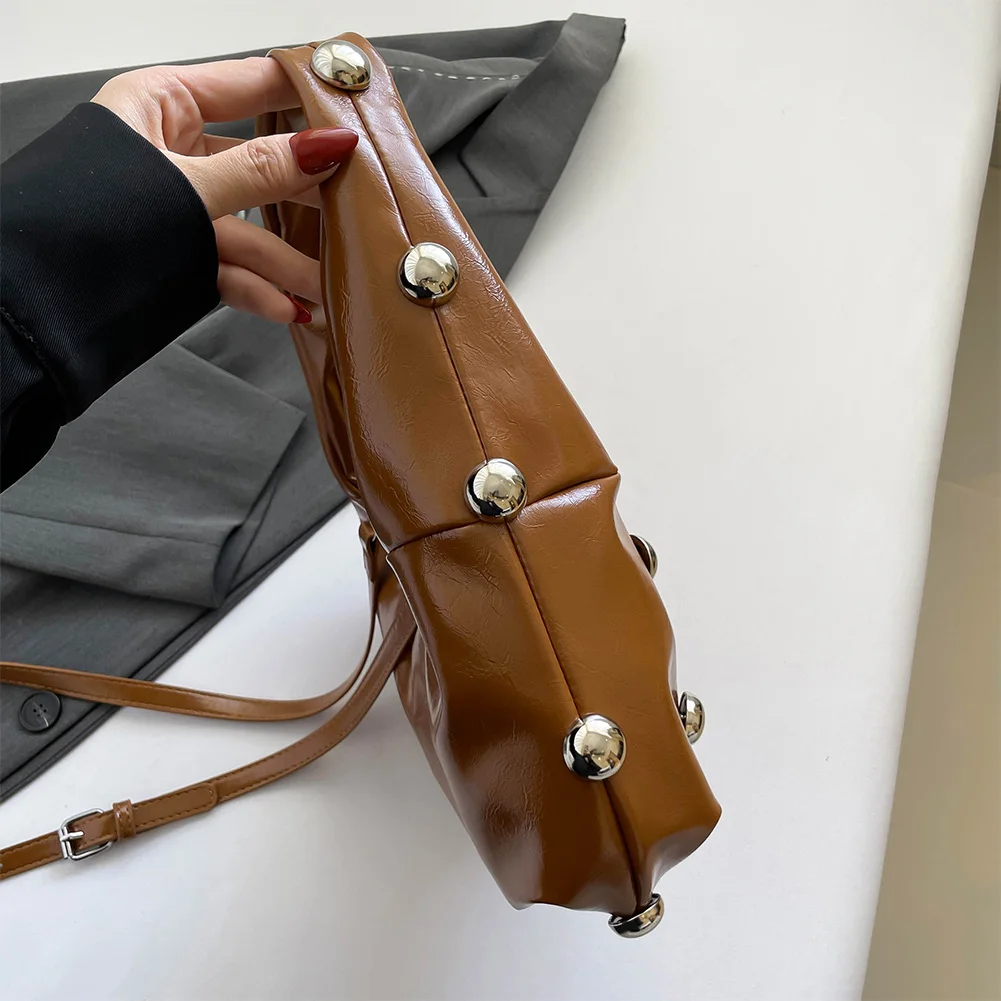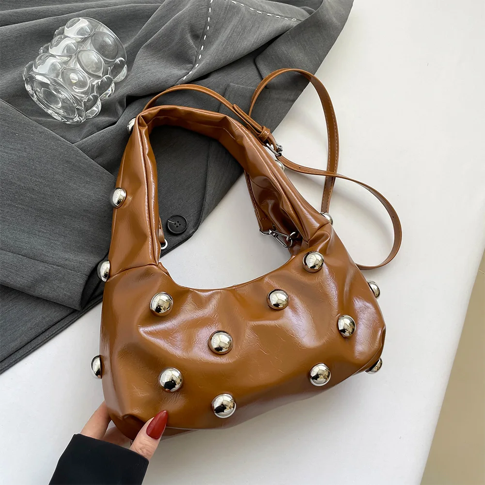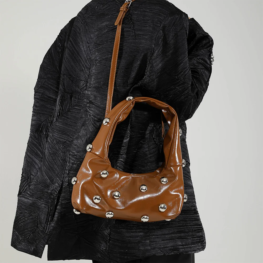 Underarm Bag Fashion Women PU Rivet Shoulder Bag Adjustable Strap Trendy Tote Handbag Punk Style Satchel Purse Chic Hobo Bag