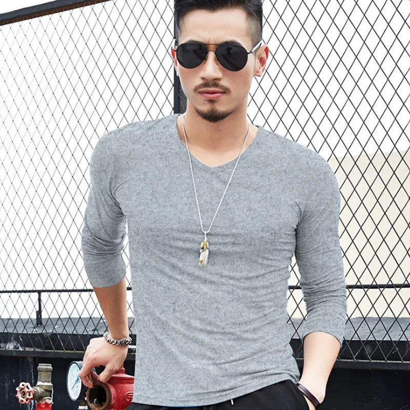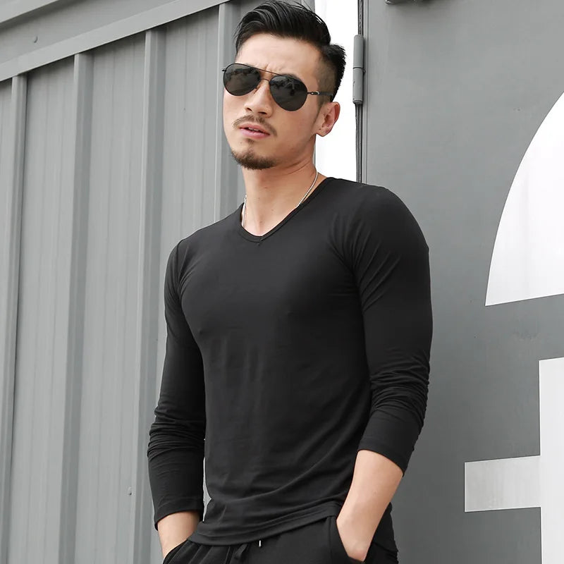 V Neck Mens T Shirts Plain Long Sleeve T Shirt Men Slim Fit Undershirt Armor Summer Casual Tee Tops Underwear Tshirt White Black