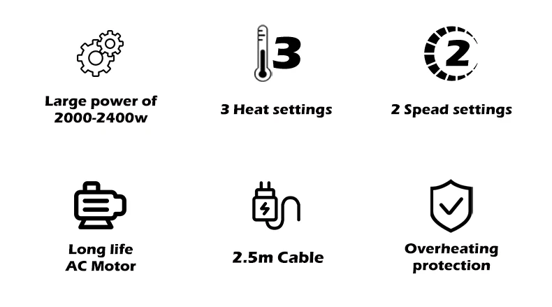 Electric wire:The hair dryer comes with a 2.5-meter cord, allowing you to blow hair as you like.